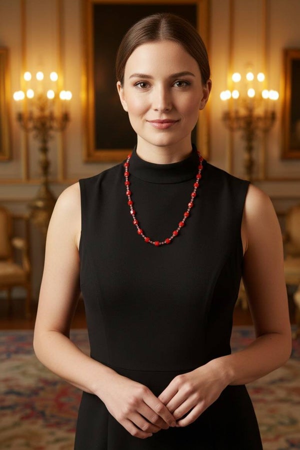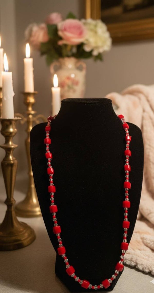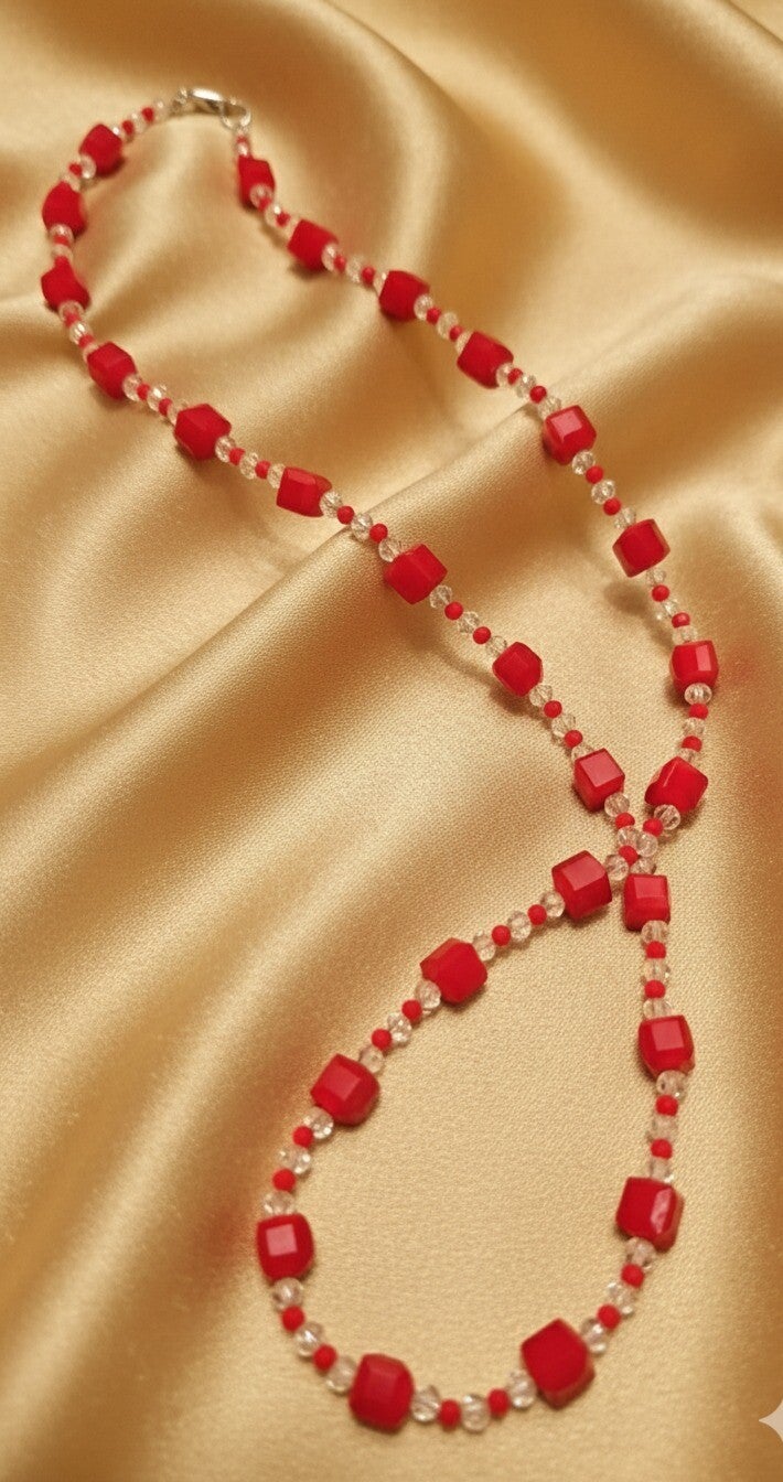 Crystal Red – Elegant Necklace with Red Glass Beads, Handmade