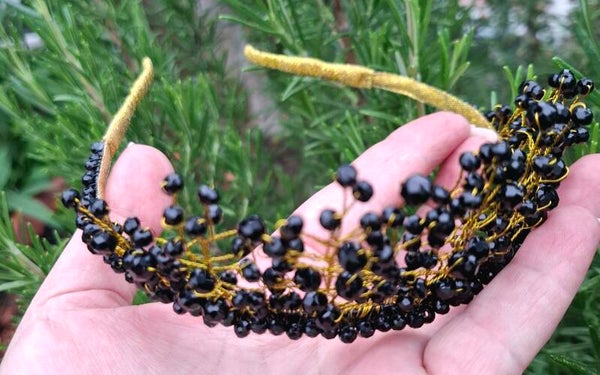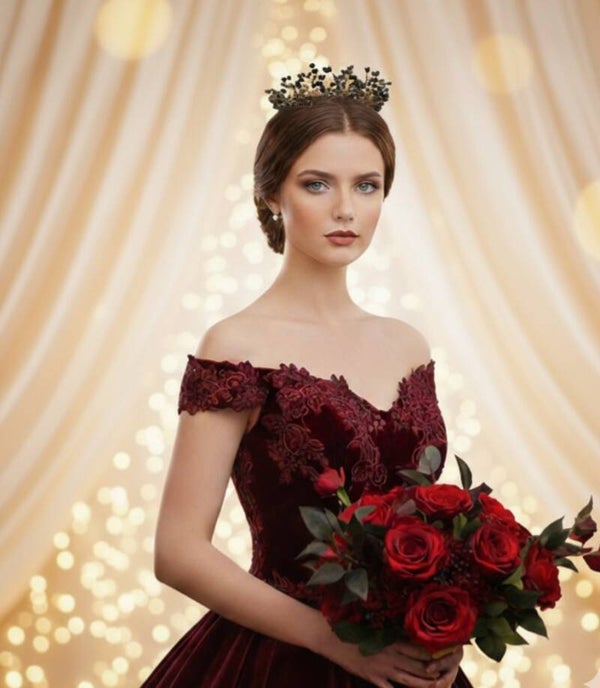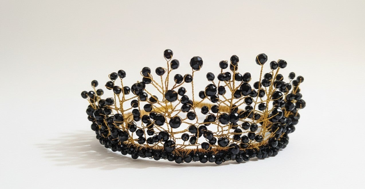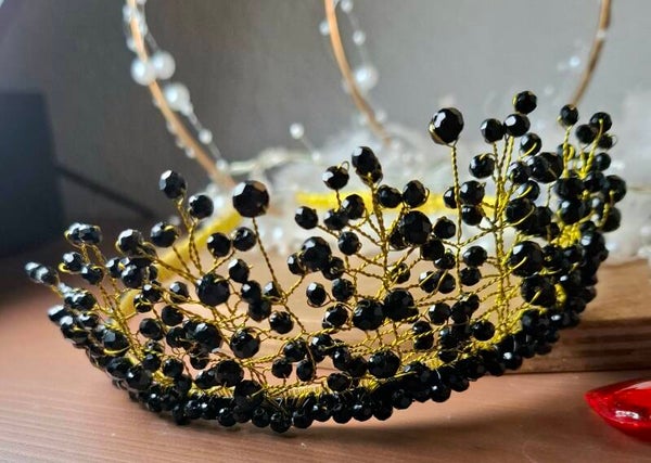 Black crystals, golden details, and fine craftsmanship make this crown a true highlight. Elegant and mysterious at the same time – perfect for brides with character, photoshoots, or special occasions.