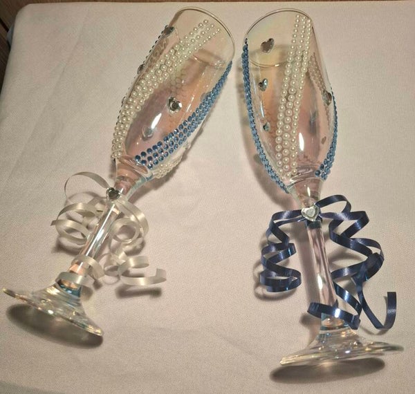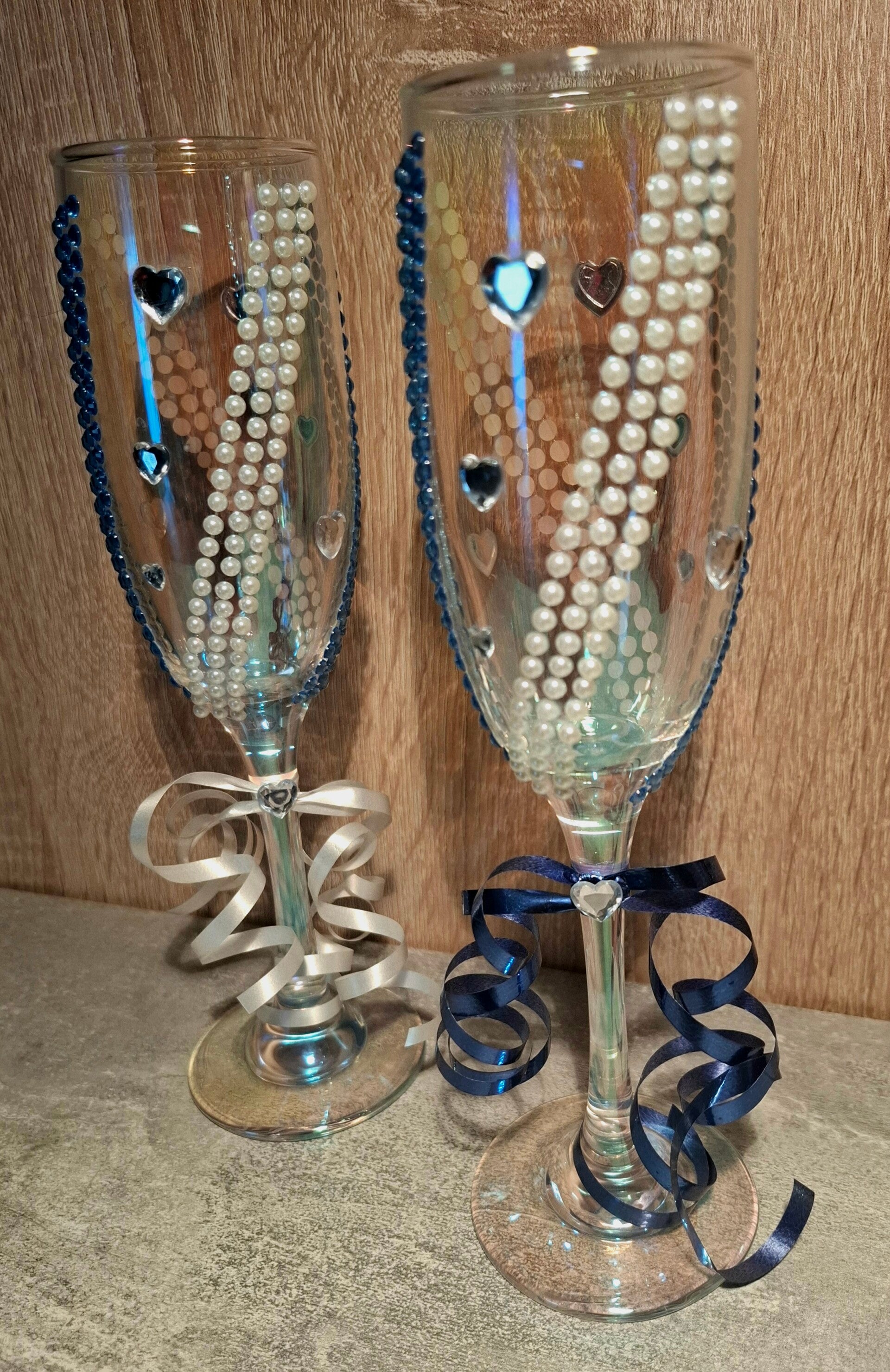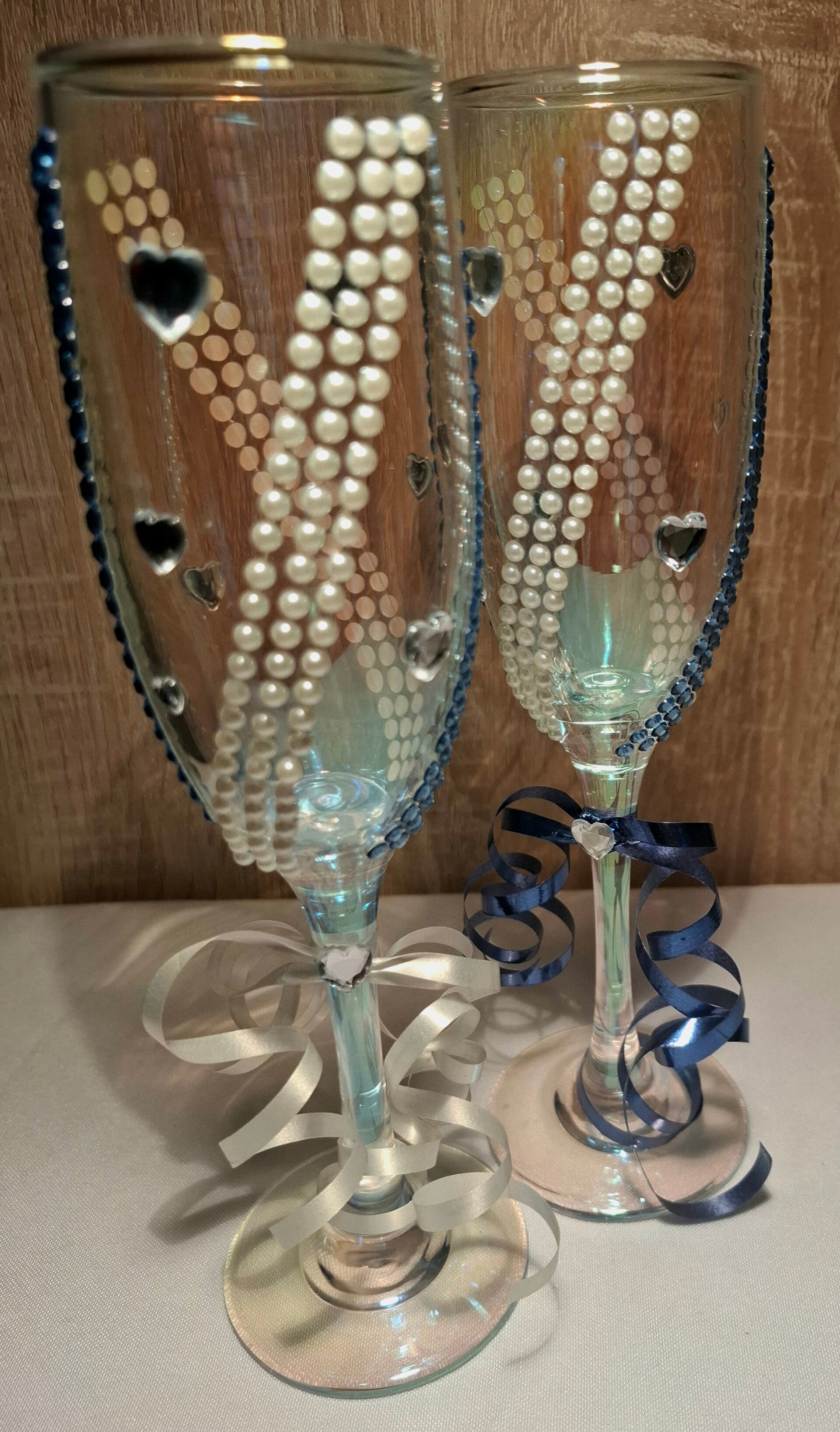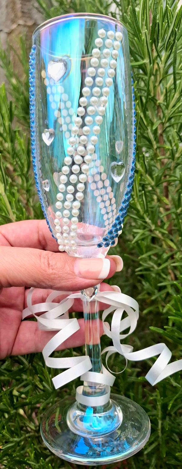 True Bliss – Hand-decorated Wedding Glasses with Pearls & Heart Details