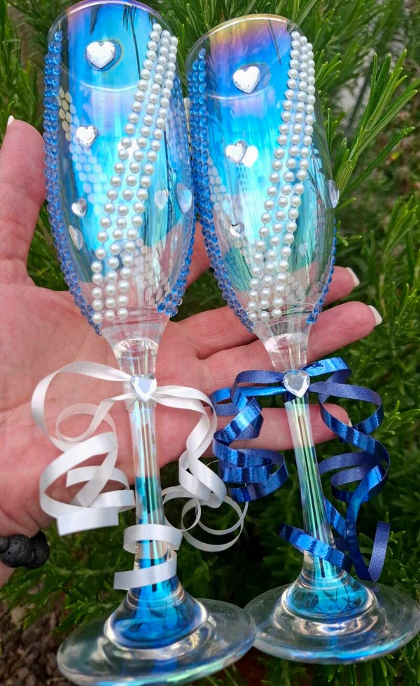 These lovingly hand-decorated champagne glasses symbolize true happiness.