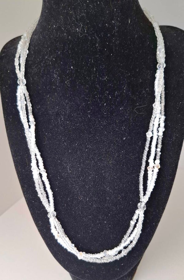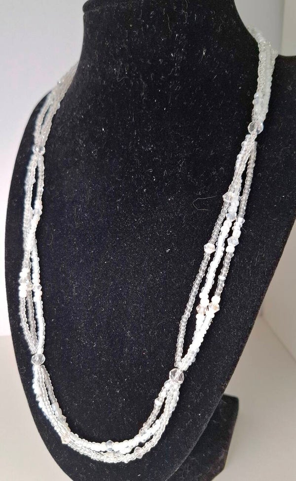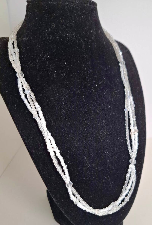 ✧ Materials: Glass beads (white & transparent), silver-colored clasp