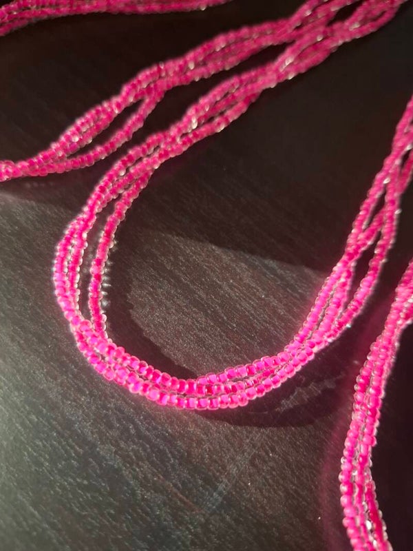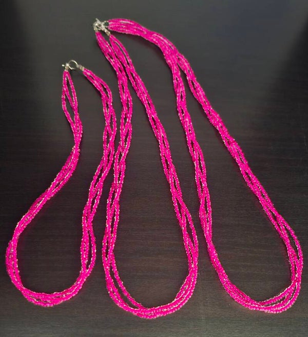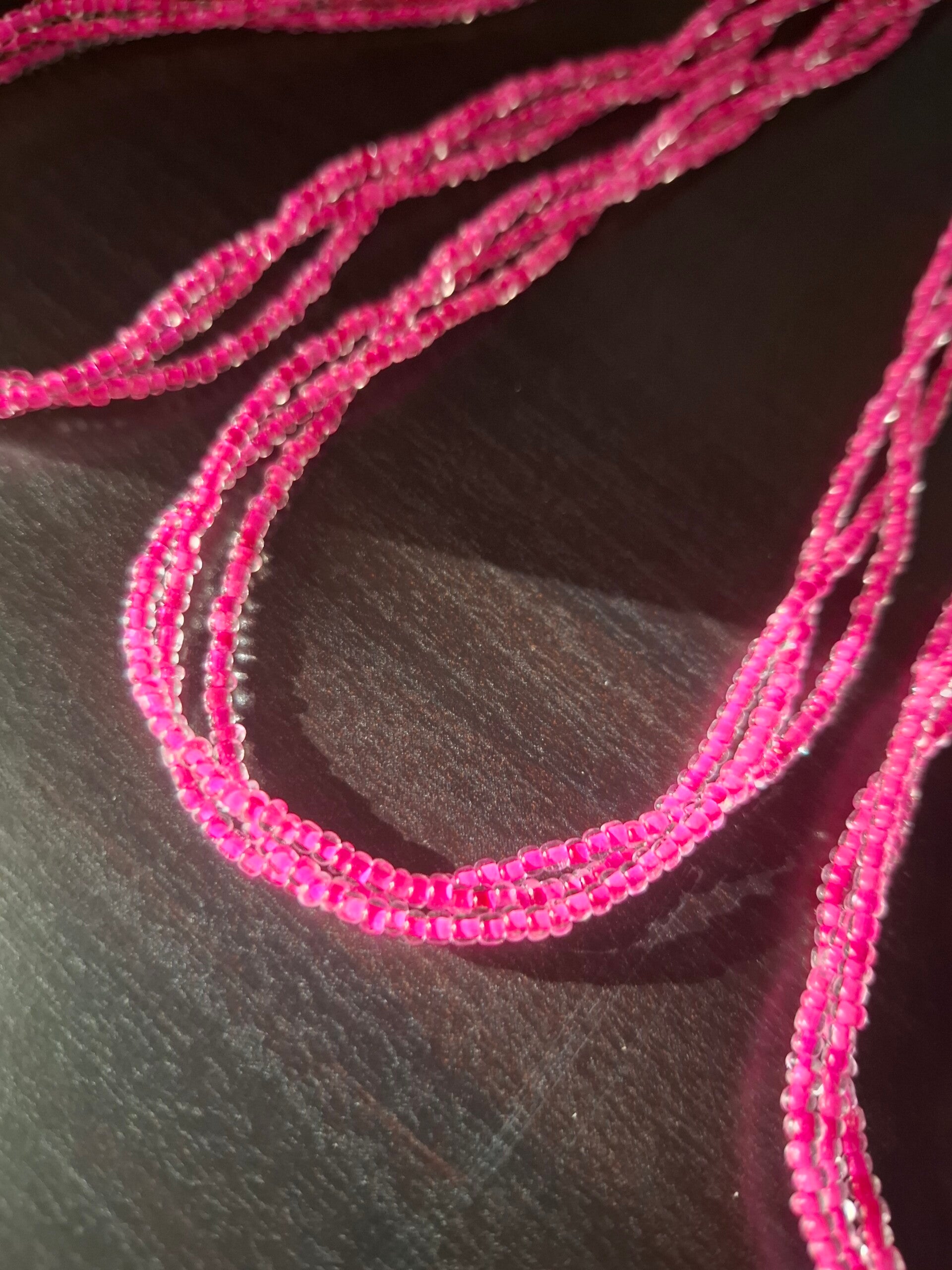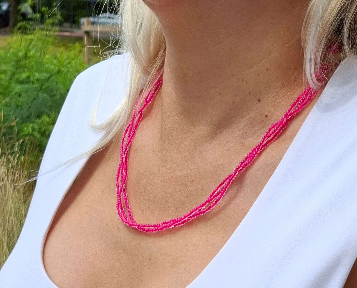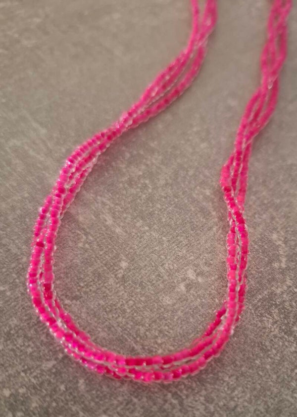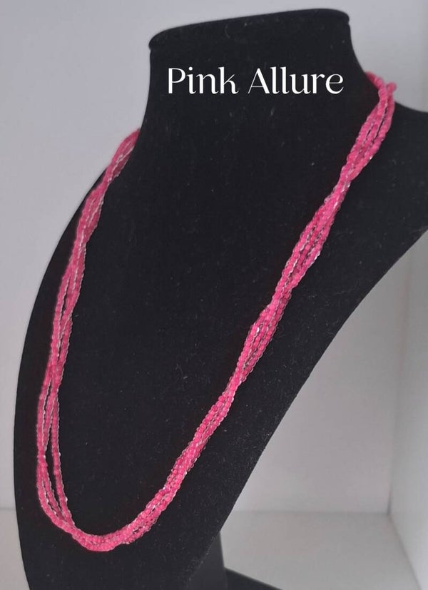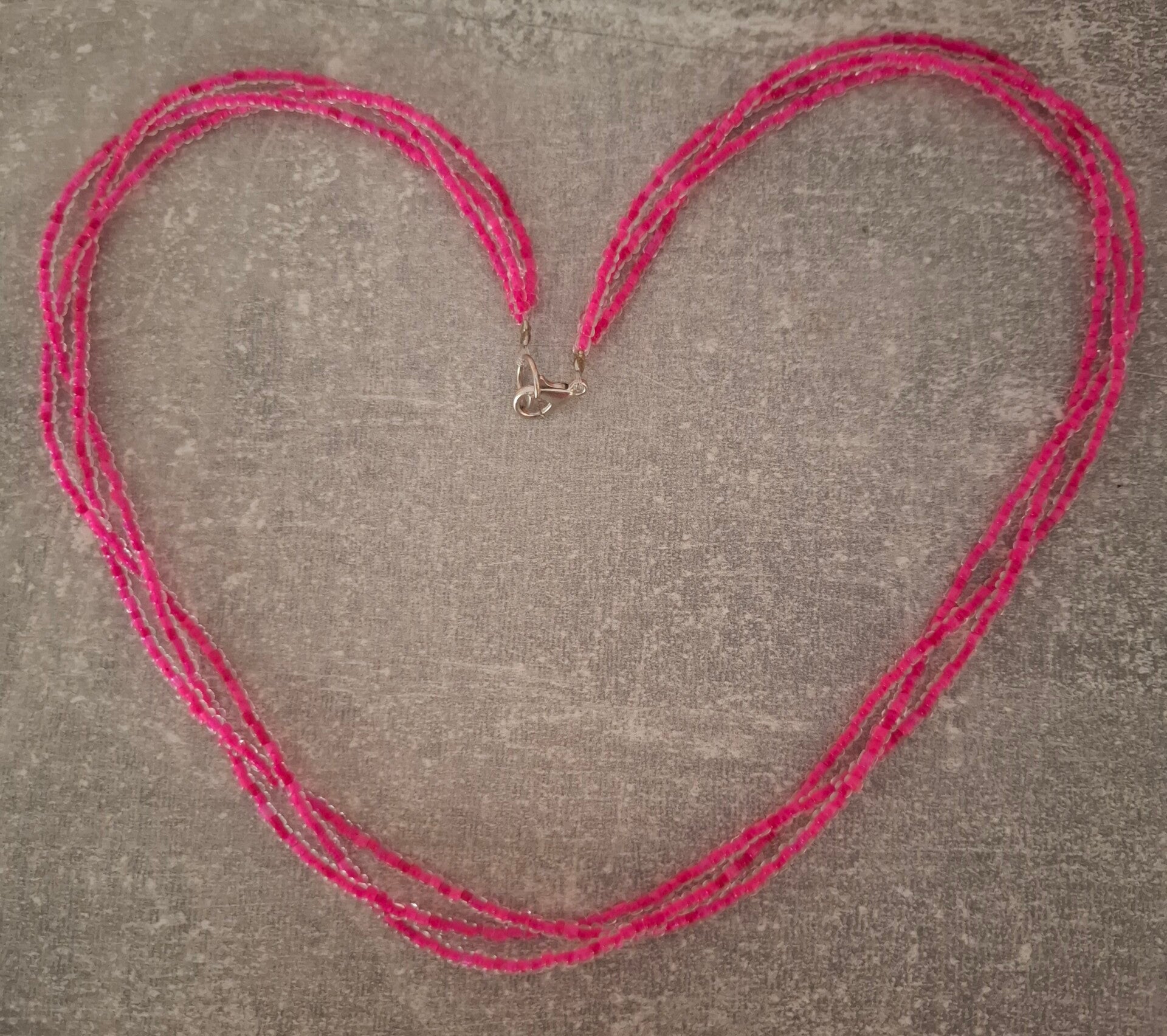 This triple-strand necklace brings color and lightness to your everyday life. “Pink Allure” combines delicately shimmering glass beads in vibrant pink to create an expressive piece of jewelry that instantly adds a fresh touch to your outfit.