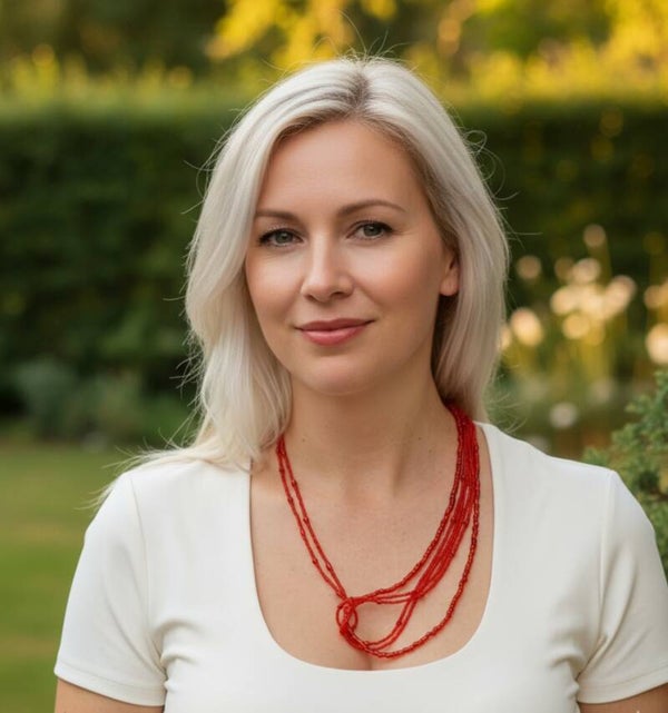 “Amber Flame” combines intense amber and red tones in a multi-strand necklace that enhances your radiance. Each bead is carefully selected and strung into a harmonious piece of jewelry that blends texture, elegance, and a hint of adventure. The softly flowing strands create a lively play of light and color – perfect for elevating a simple outfit or accompanying special occasions.