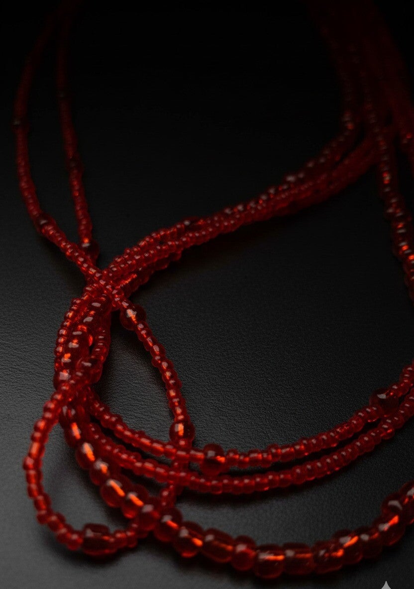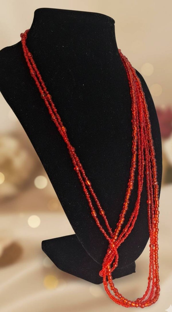 🔥 Amber Flame – Multi-Strand Glass Bead Necklace in Amber Red
