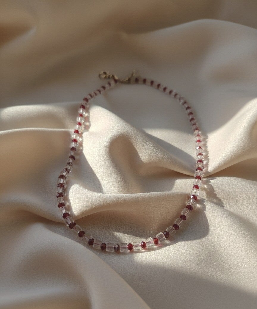 Berry – Delicate Wine Red Glass Bead Necklace, Handmade · Crystal Harmony Collection