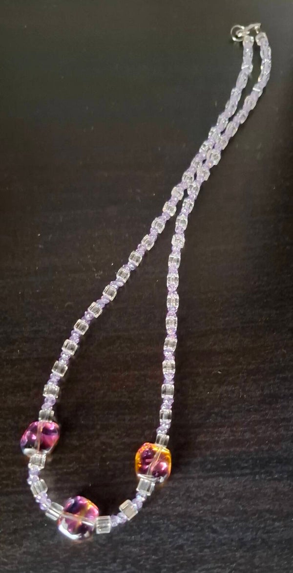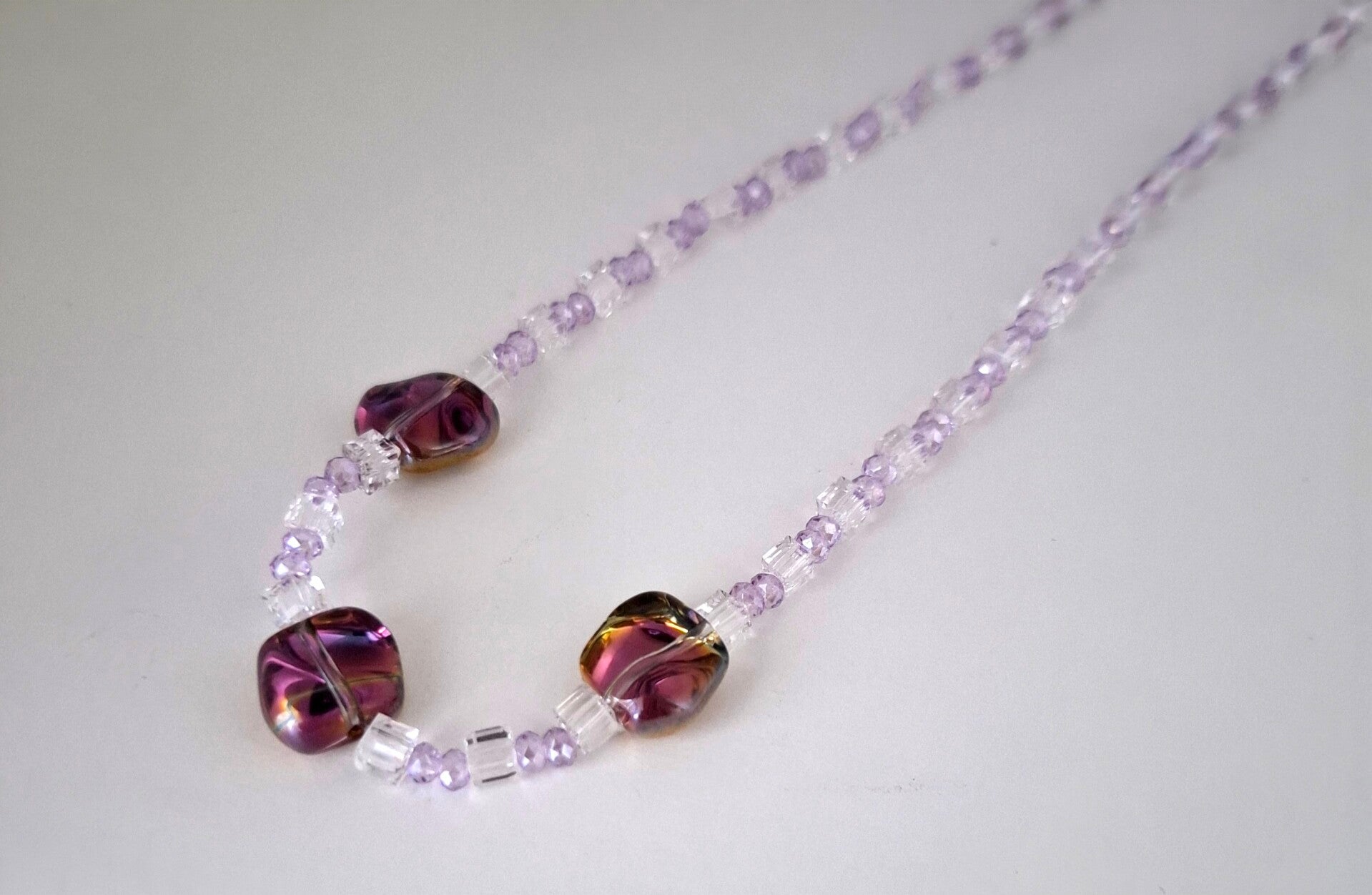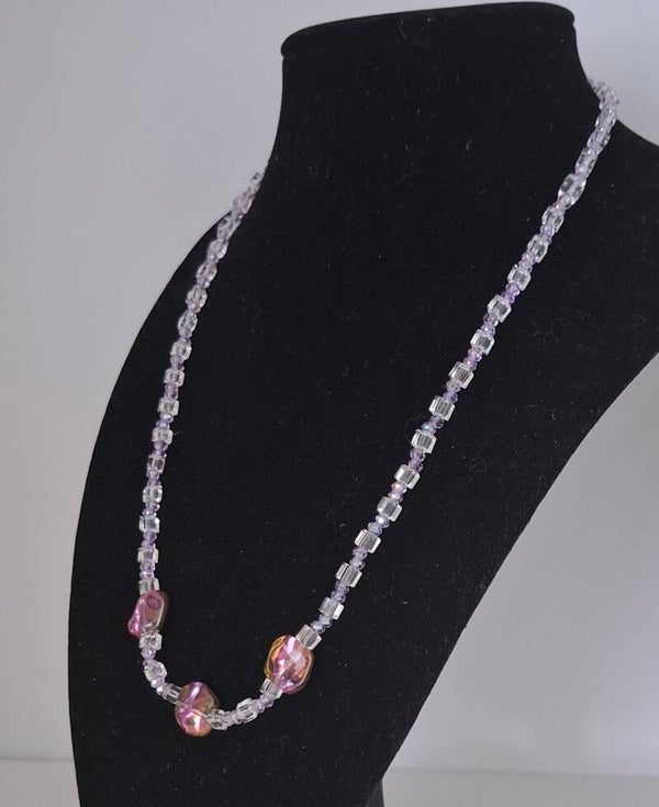 Leichtigkeit trifft Farbe: „Amethyst Dream“ ist eine handgefertigte Kette aus hochwertigen Glasperlen in zartem Flieder, Rosé und Kristallklar, die jedem Outfit einen sanften Farbakzent verleiht. Die klare Linienführung der Perlen sorgt für eine elegante Ausstrahlung, während die schimmernden Akzente in Rosé jedem Look einen Hauch von Individualität schenken.