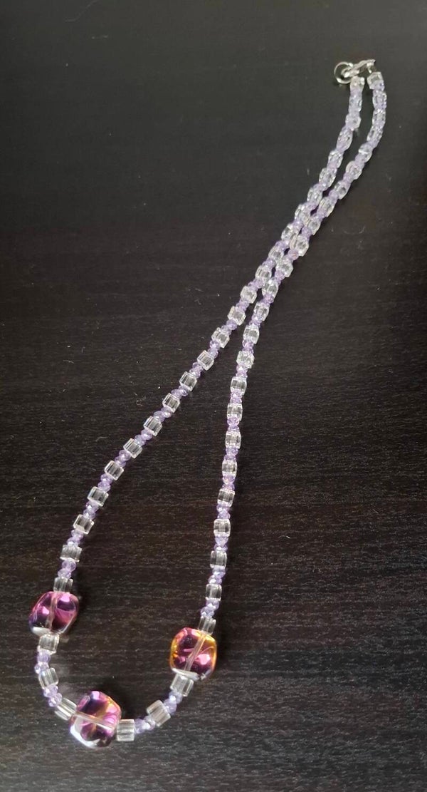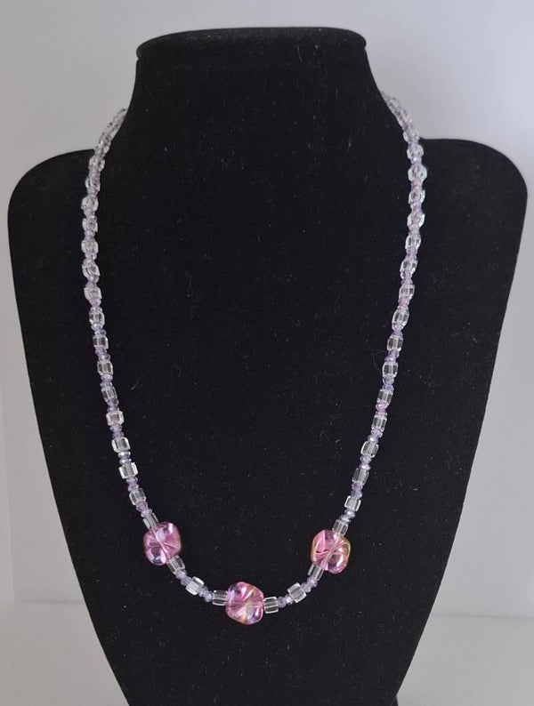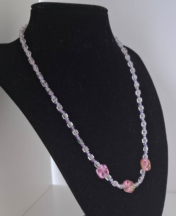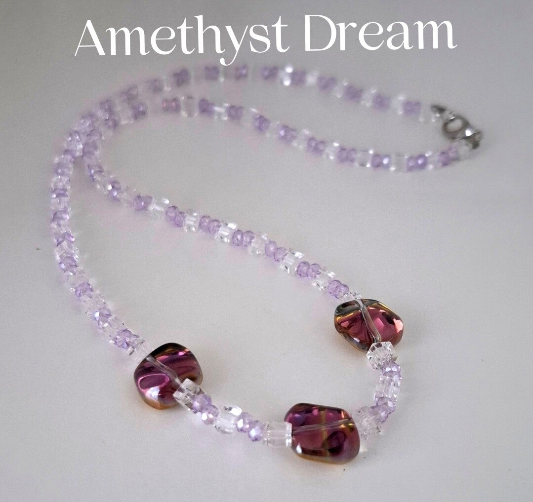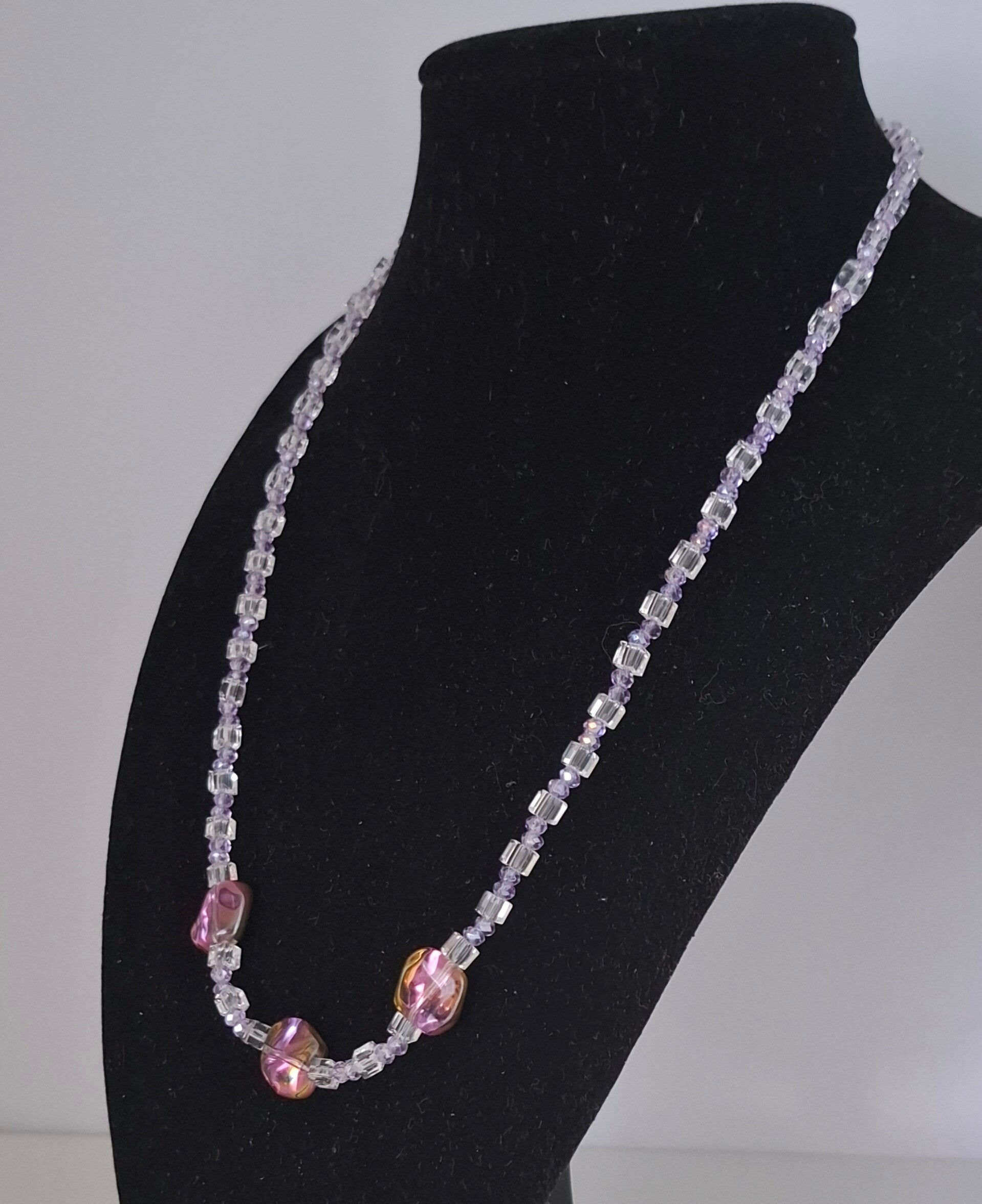 Lightness meets color: “Amethyst Dream” is a handmade necklace crafted from high-quality glass beads in soft lilac, rose, and crystal clear tones – adding a gentle touch of color to any outfit. The clean arrangement of the beads creates an elegant look, while the shimmering rose accents give every style a hint of individuality.