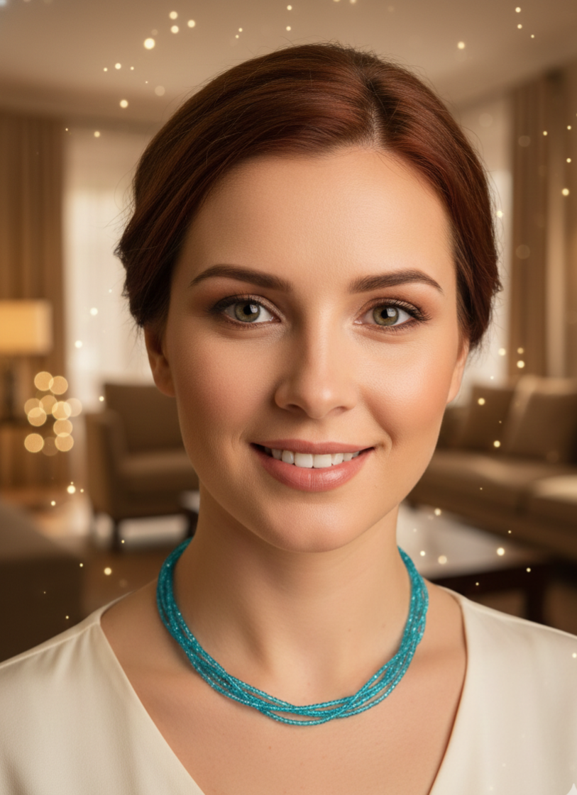 Like a fresh breeze on a summer’s day: “Blue Breeze” combines shimmering glass beads in various shades of blue with a clean, minimalist design. This delicate necklace gently wraps around your neckline, adding a soft, maritime touch to your outfit – subtle yet special.