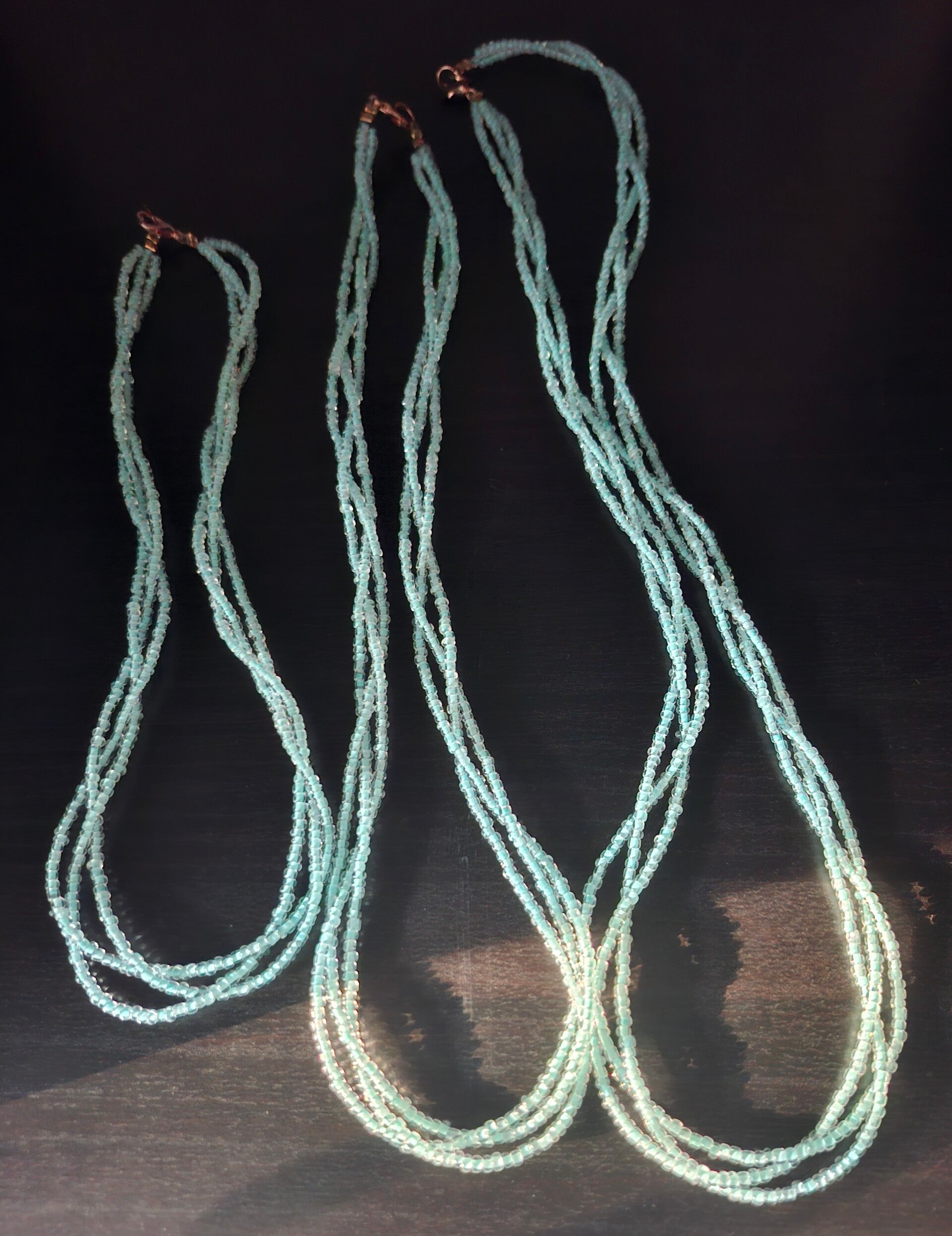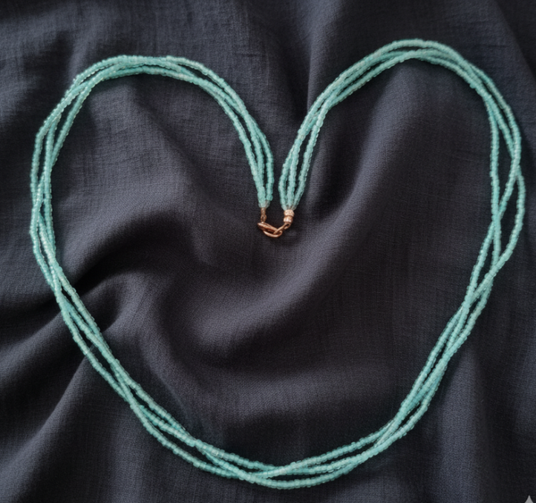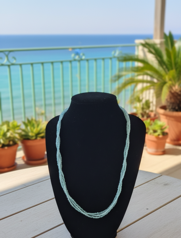 “Minty Waves” evokes the sound of gentle waves and warm summer days. This handmade glass bead necklace in soft mint, finished with an antique gold-colored clasp, is lightweight, comfortable to wear, and adds a touch of freshness to your everyday life or special moments.