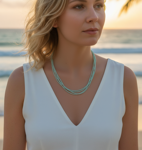 Available in 40 cm, 50 cm, and 60 cm lengths, “Minty Waves” will accompany you softly through your day – whether as a holiday companion, a subtle everyday detail, or a thoughtful gift.