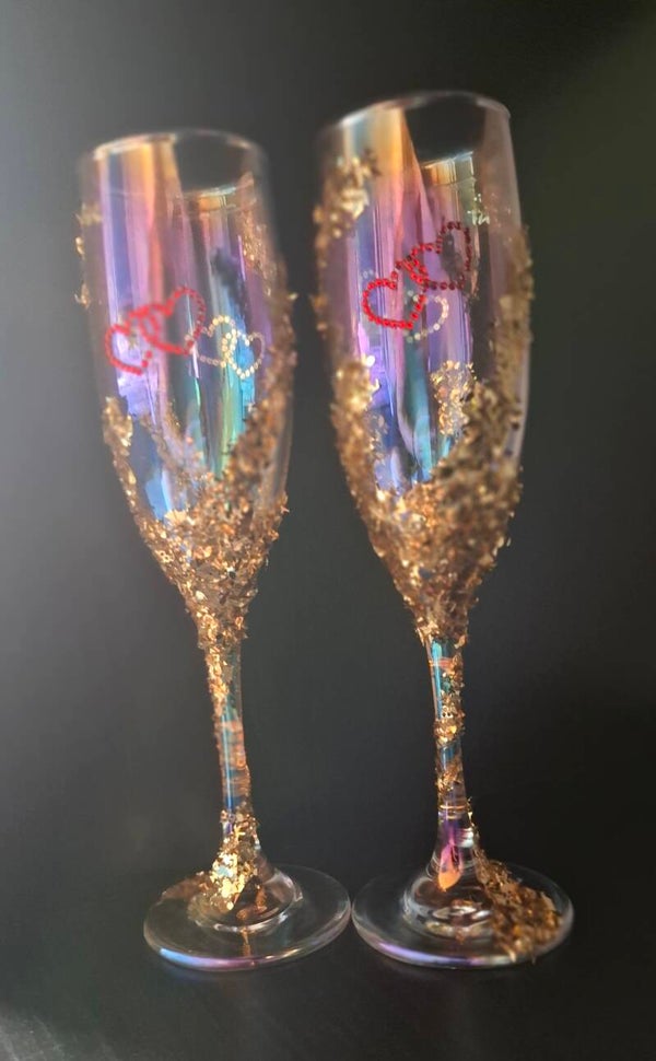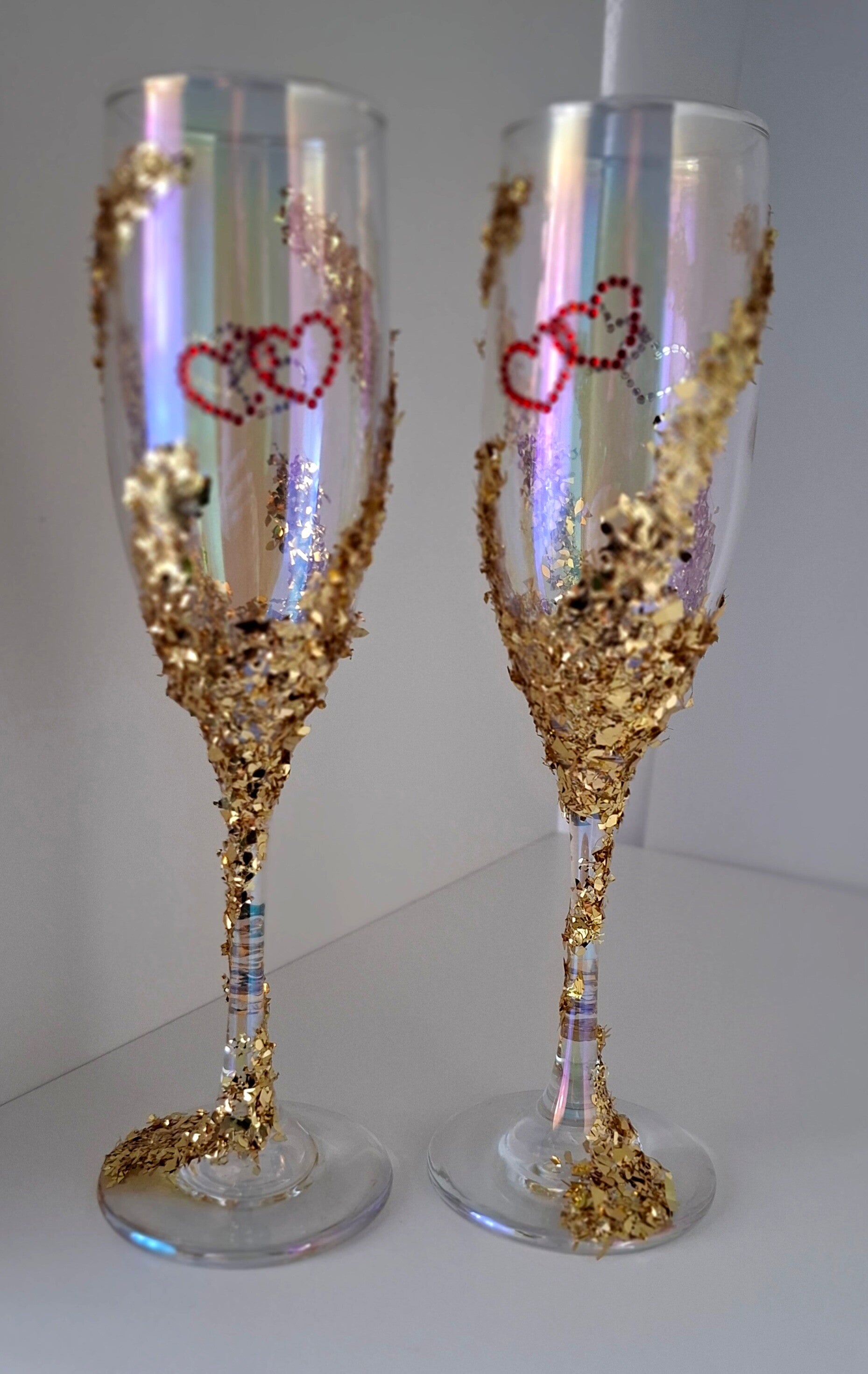 Heart of Gold – Hand-decorated Wedding Champagne Glasses