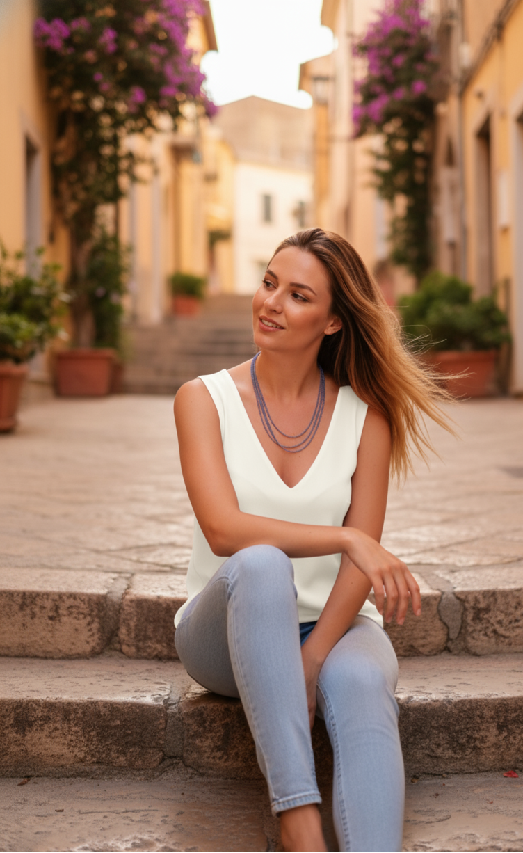This necklace is lightweight, comfortable to wear, and pairs perfectly with jeans, linen, or your favorite dress. It gently accompanies you through everyday life or adds a subtle touch of color to special moments.