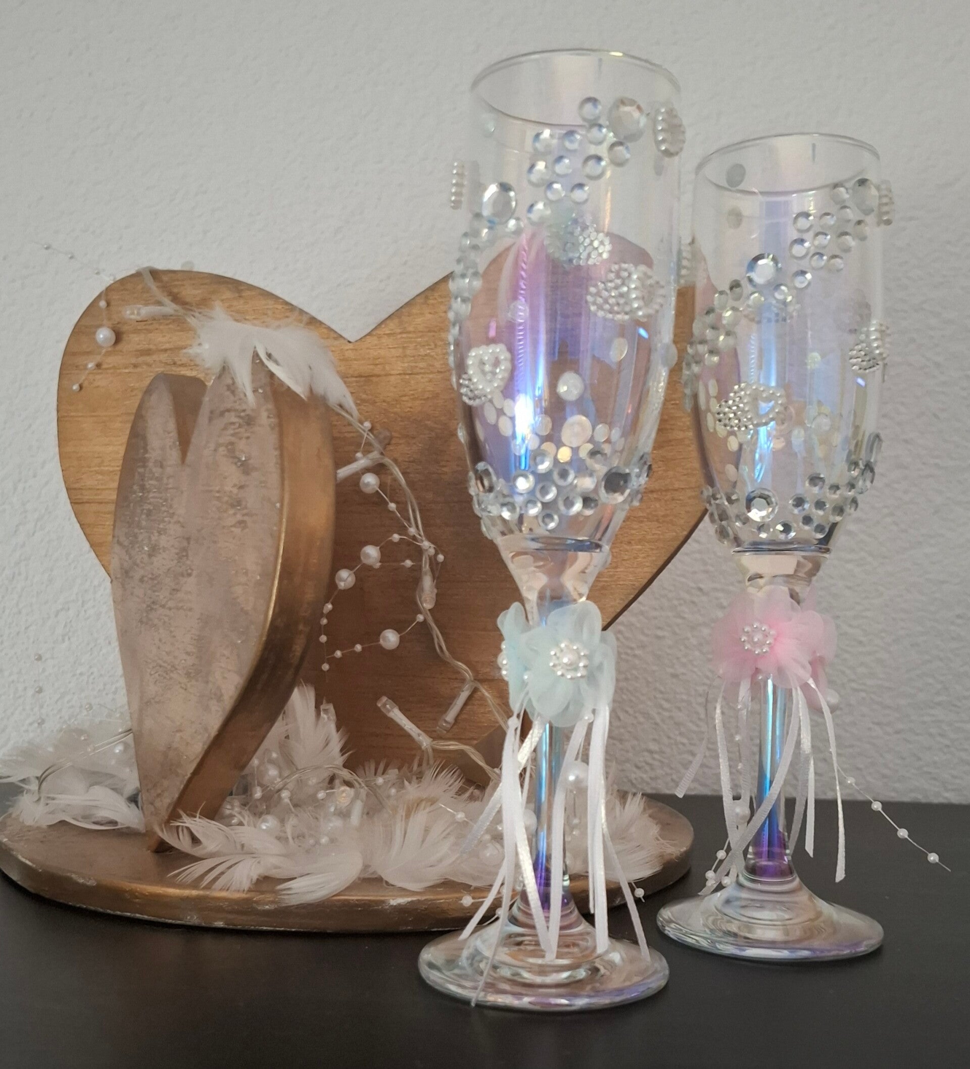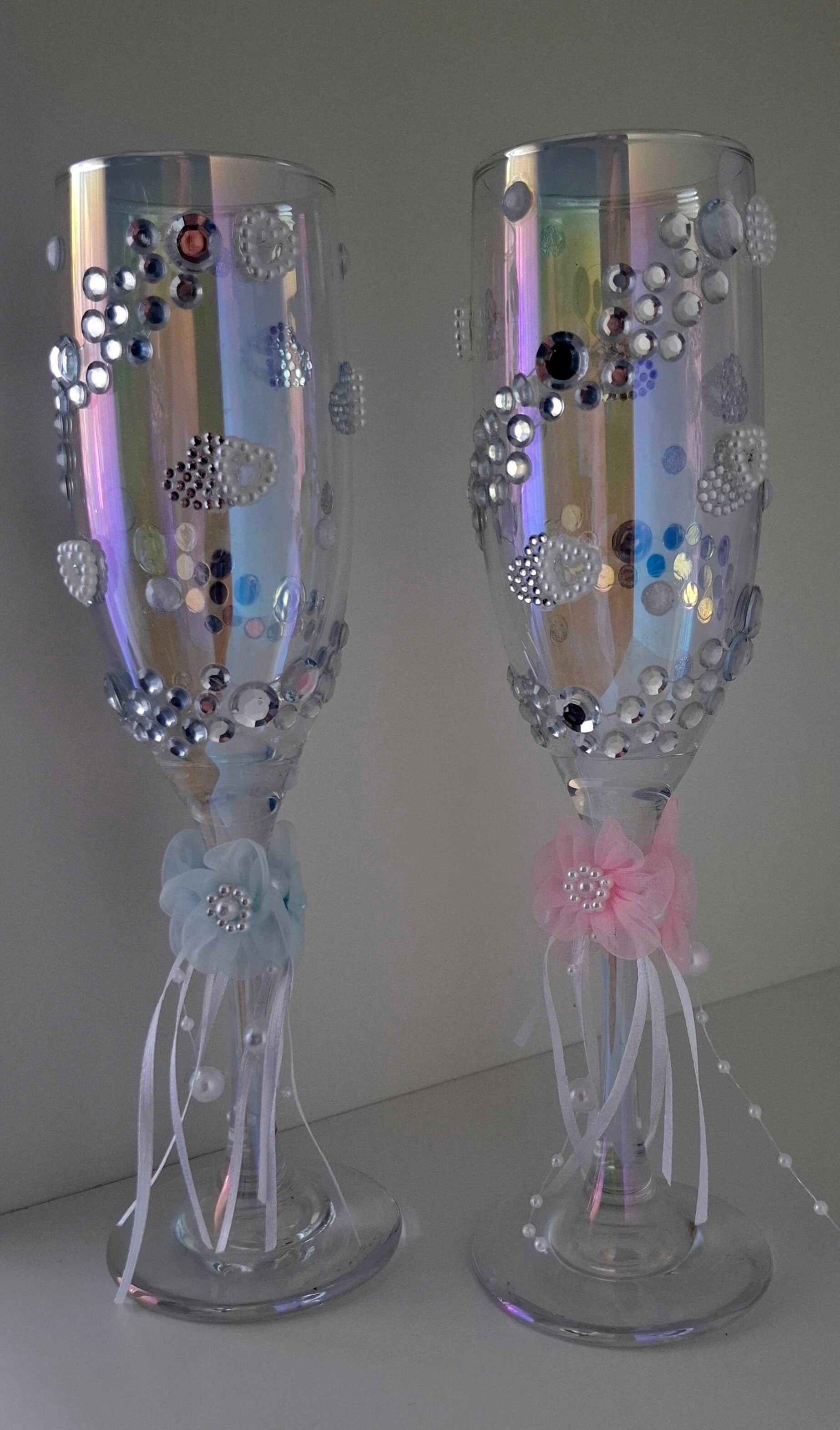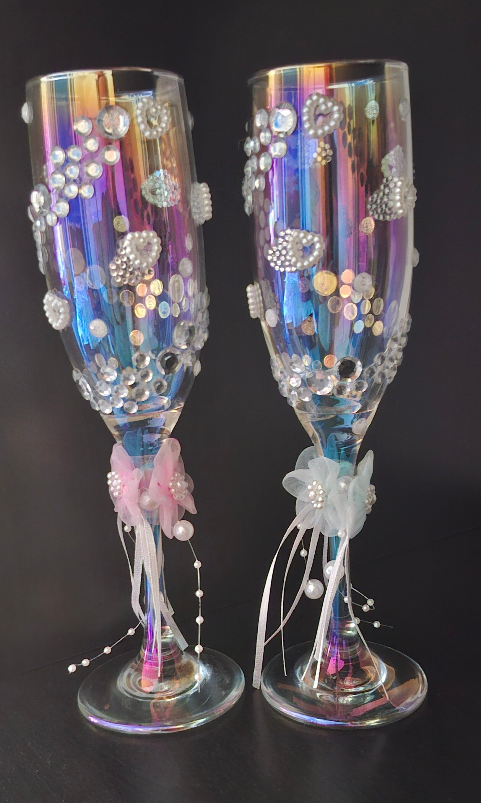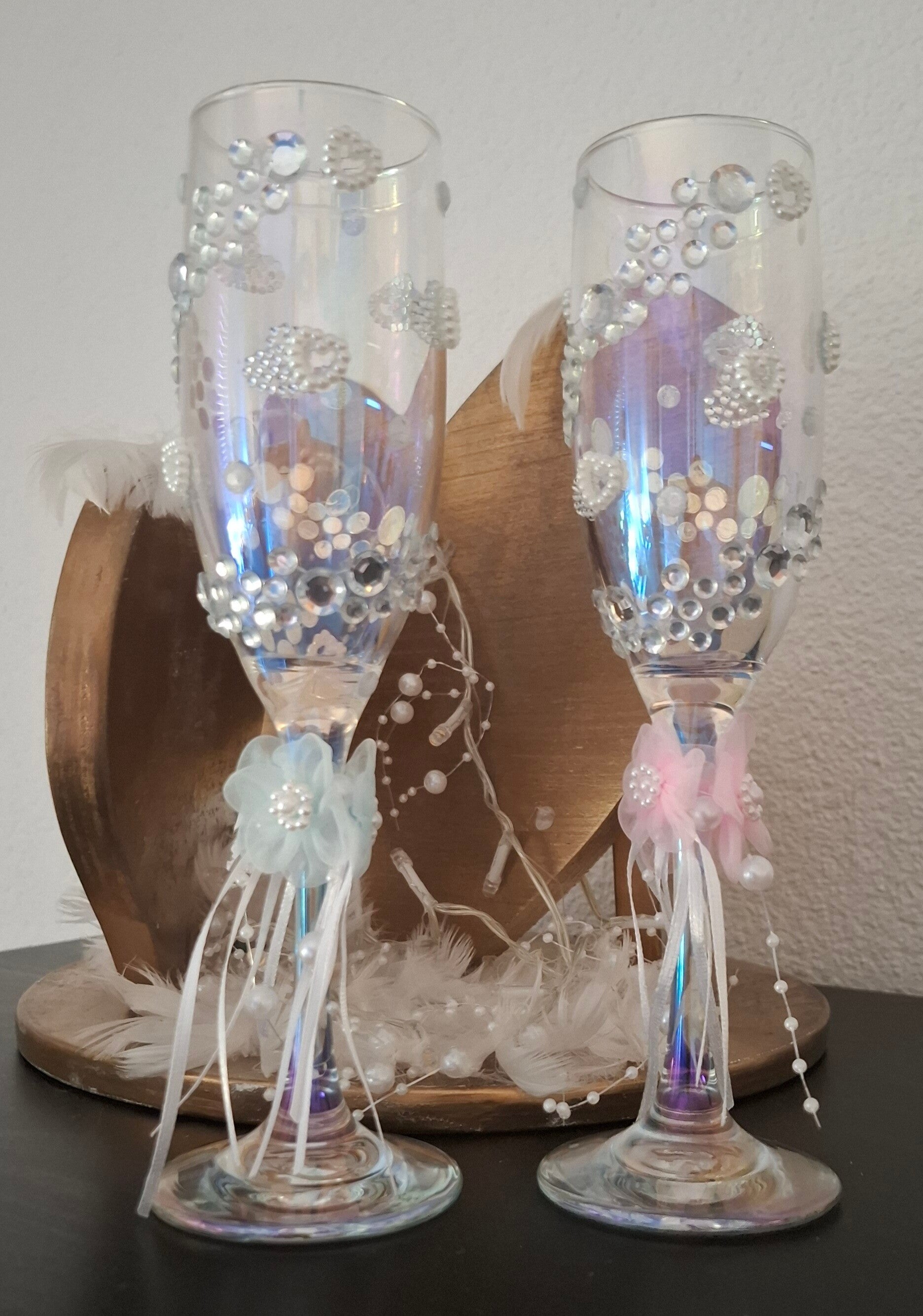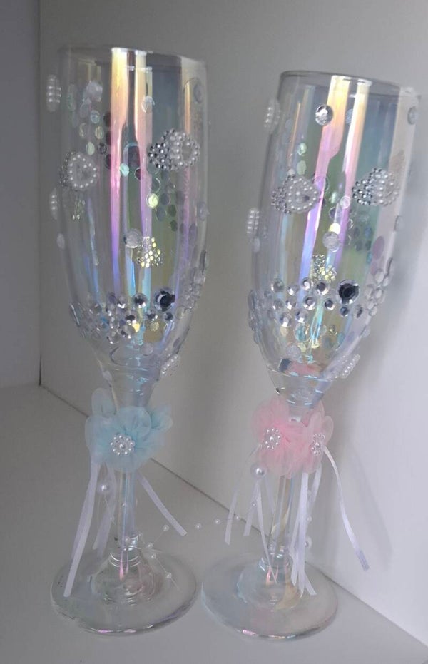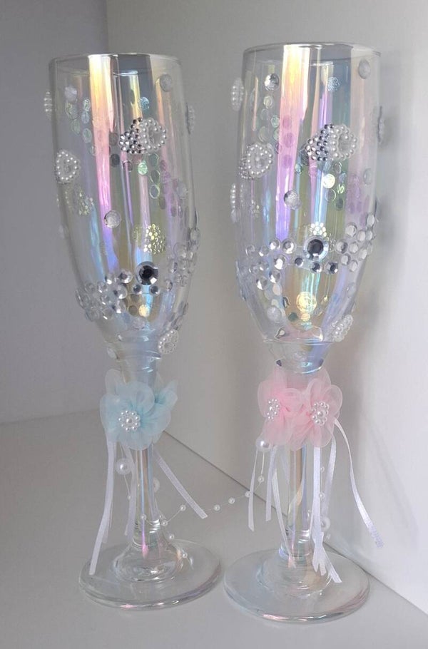 ✨ Set: 2 hand-decorated champagne glasses