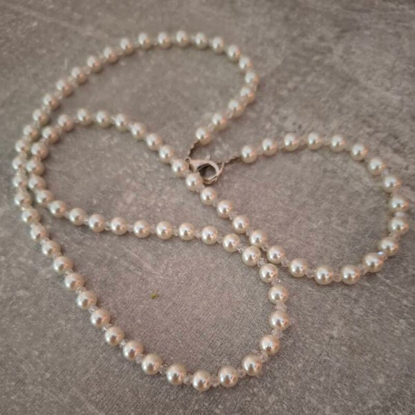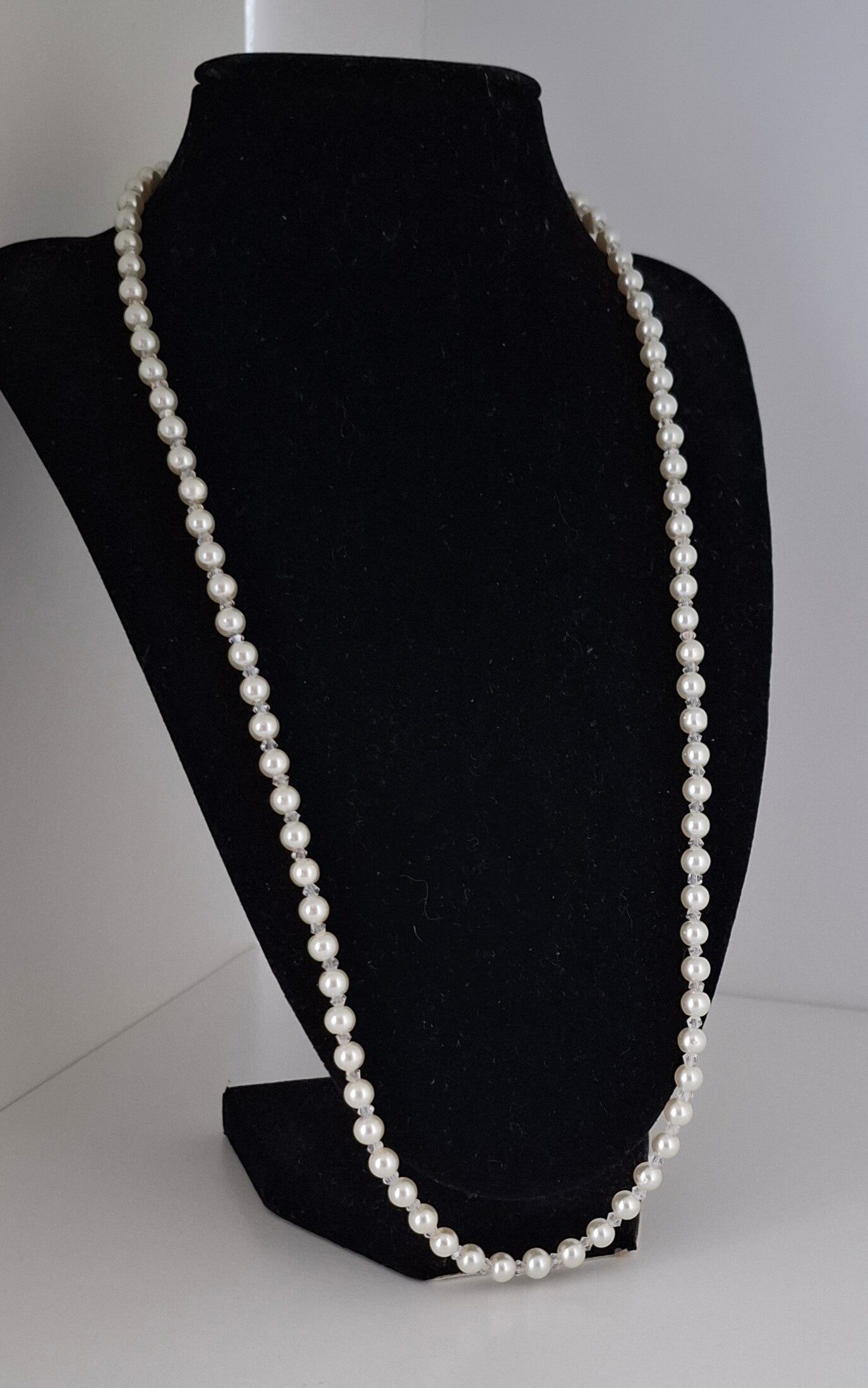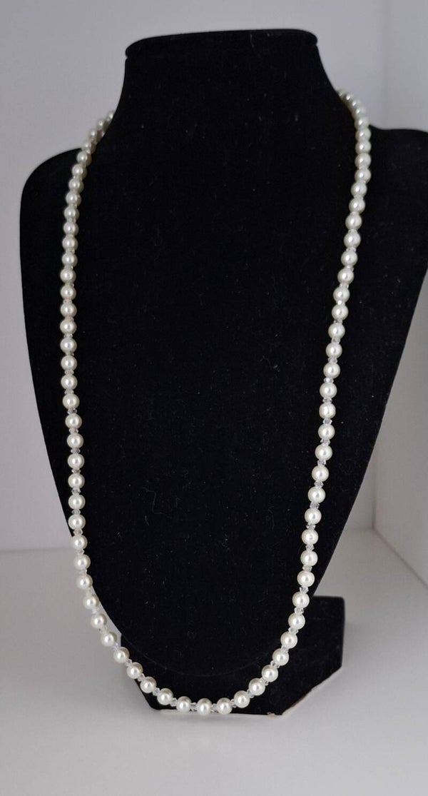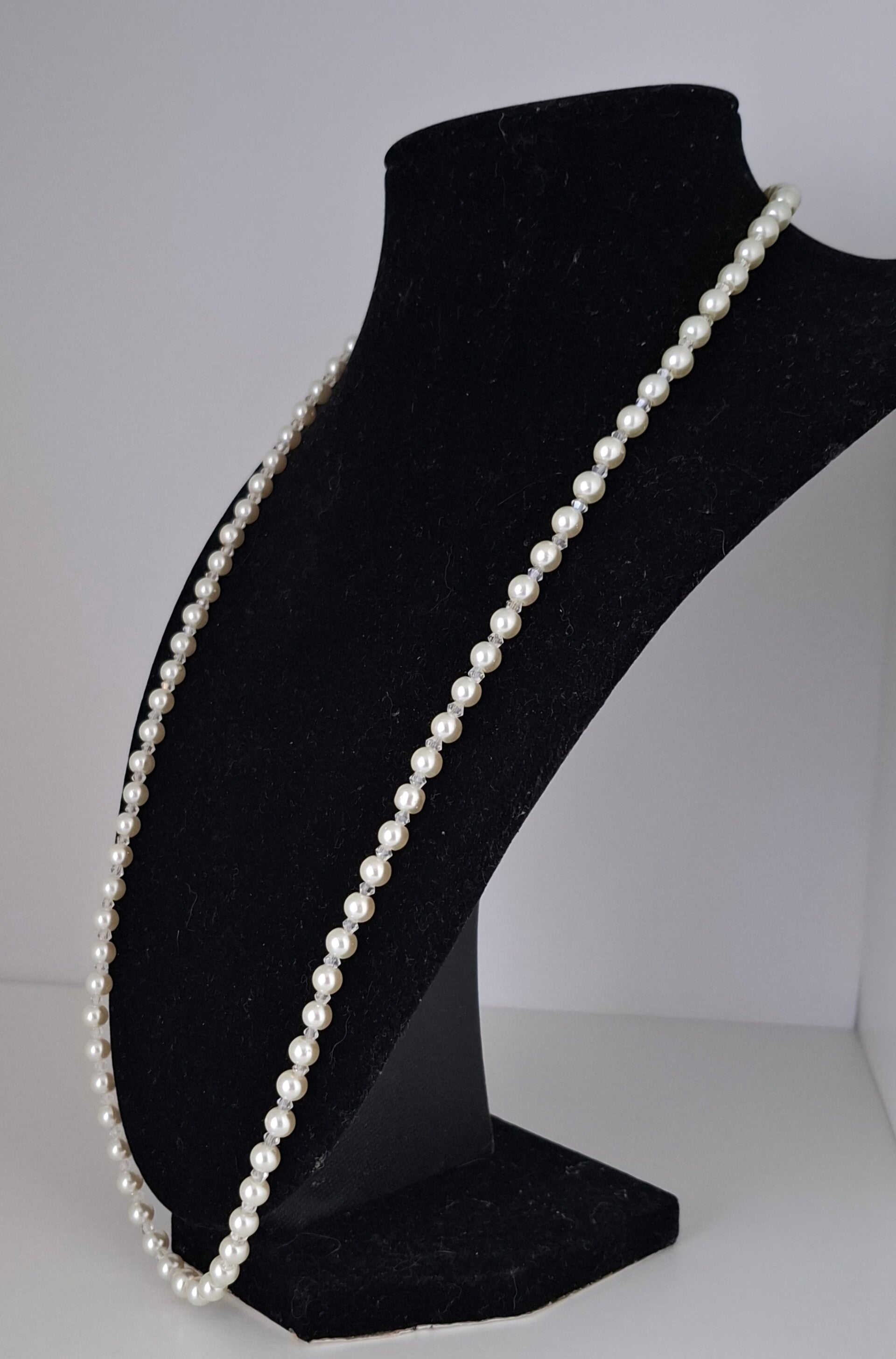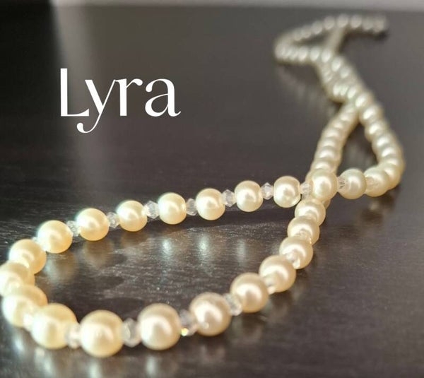 Our "Lyra" necklace combines cream-white glass pearls with fine transparent beads, gently catching the light and softly shimmering on your skin. It’s lightweight and comfortable to wear—perfect for your big day, a civil ceremony, or as a delicate keepsake just for yourself.