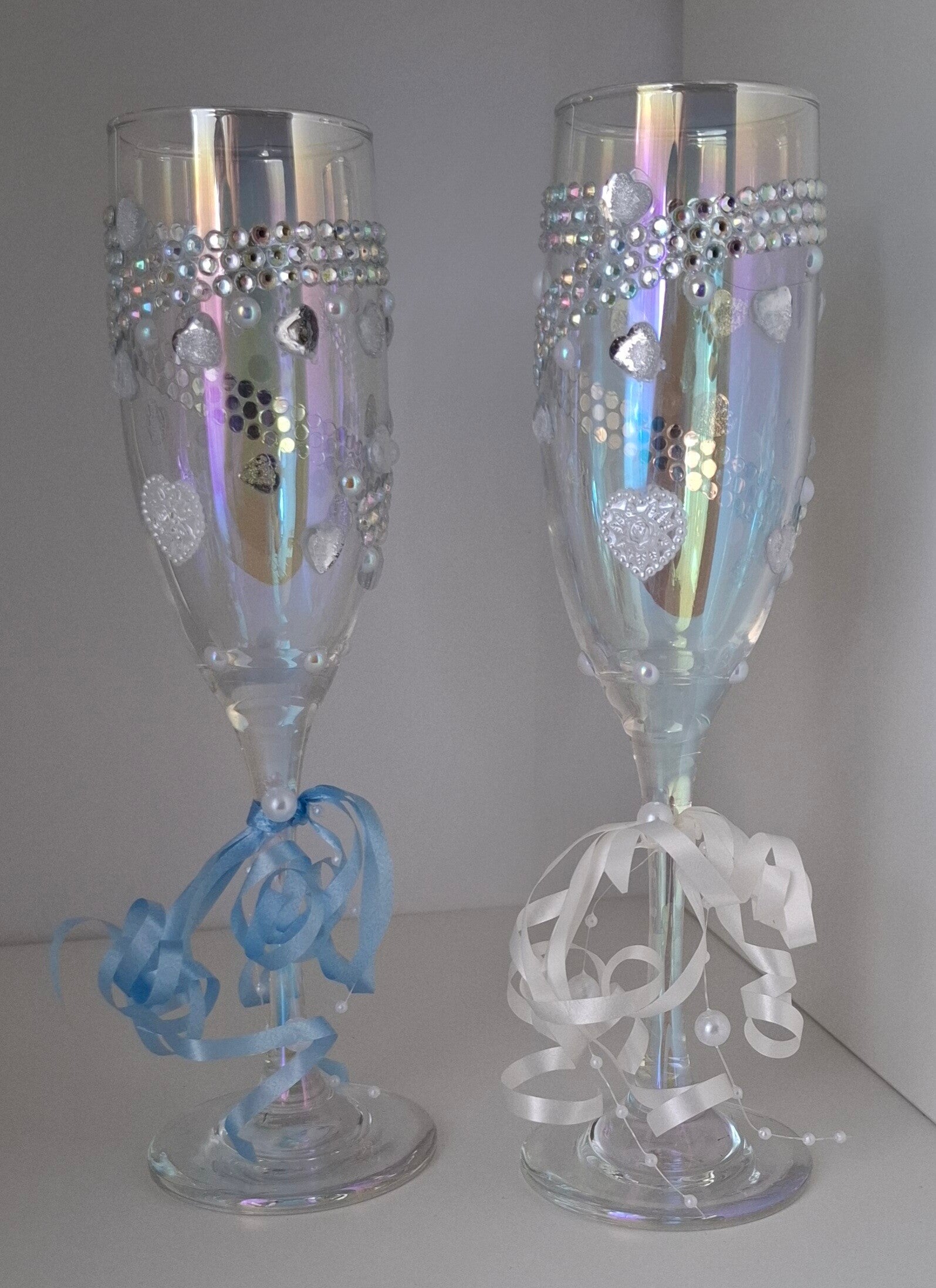Frosted Hearts – Hand-decorated Champagne Glasses for Your Special Day