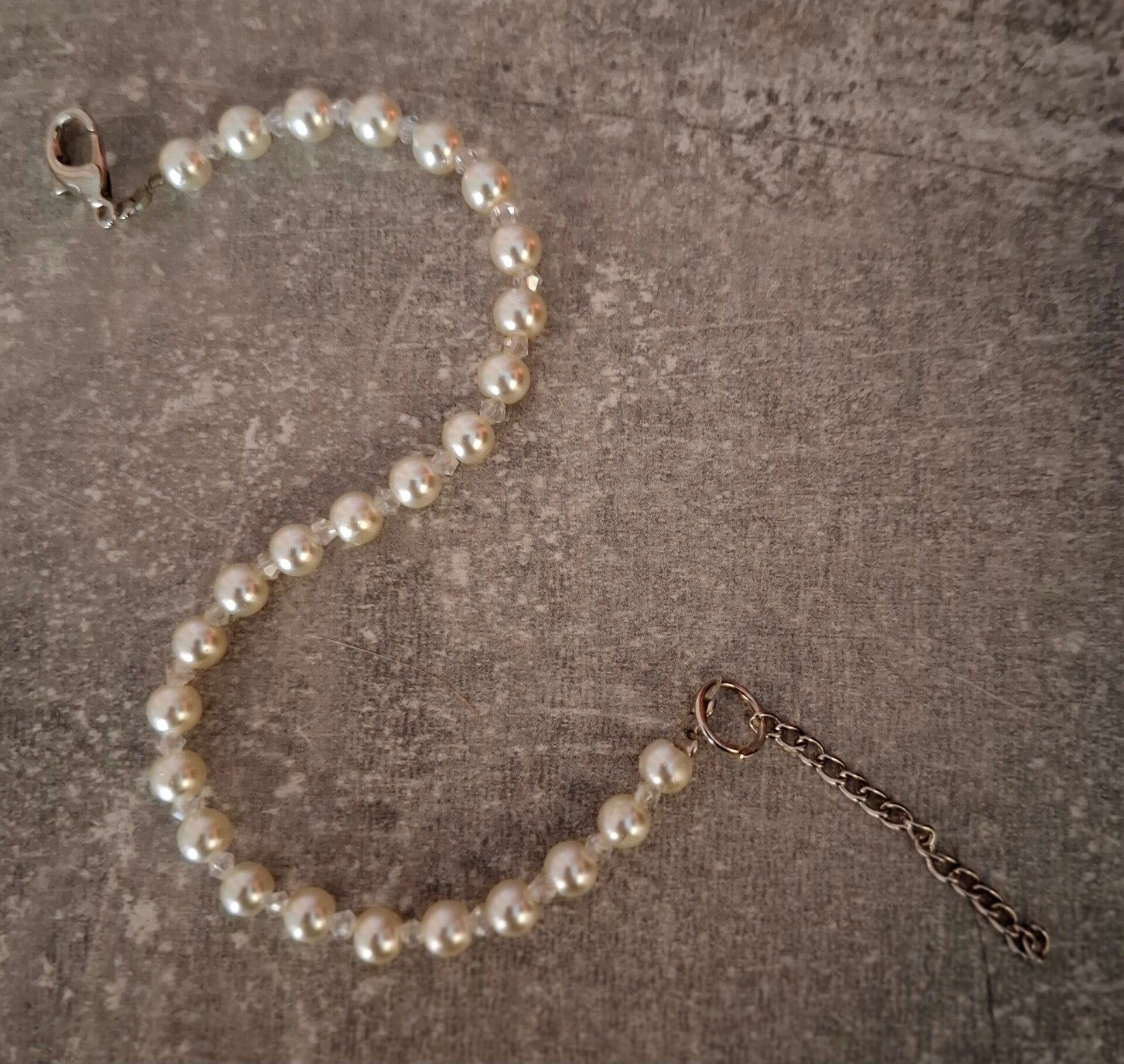 “Lyra Moon” is a handcrafted bracelet made of white glass pearl beads and transparent glass beads that shimmer softly in the light. Thanks to a 3.5 cm extension chain, the bracelet can be easily adjusted to fit your wrist comfortably and securely.