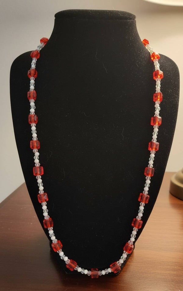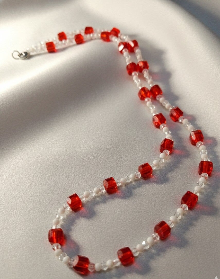 Red Ice – Elegant Glass Bead Necklace in Red & Crystal