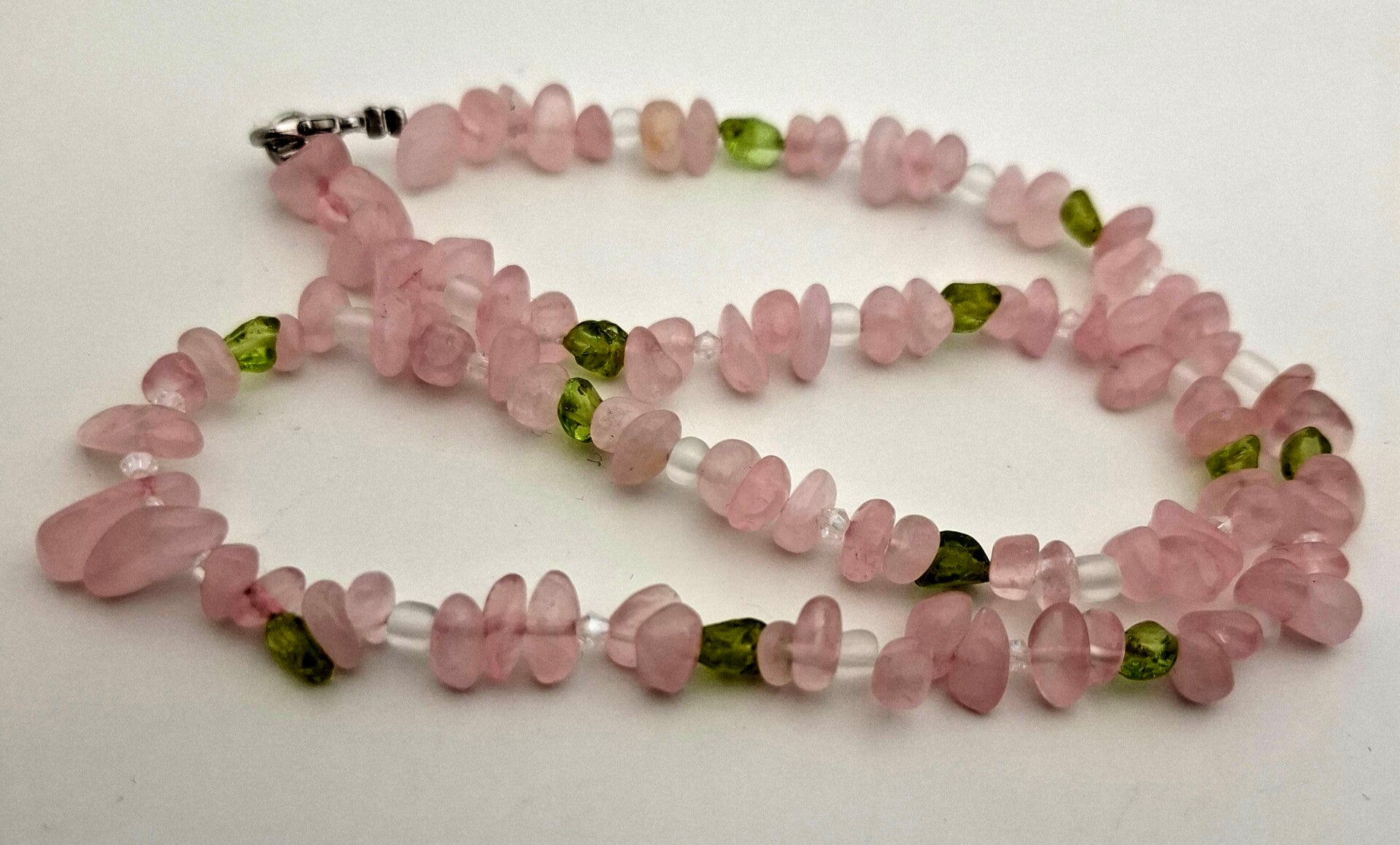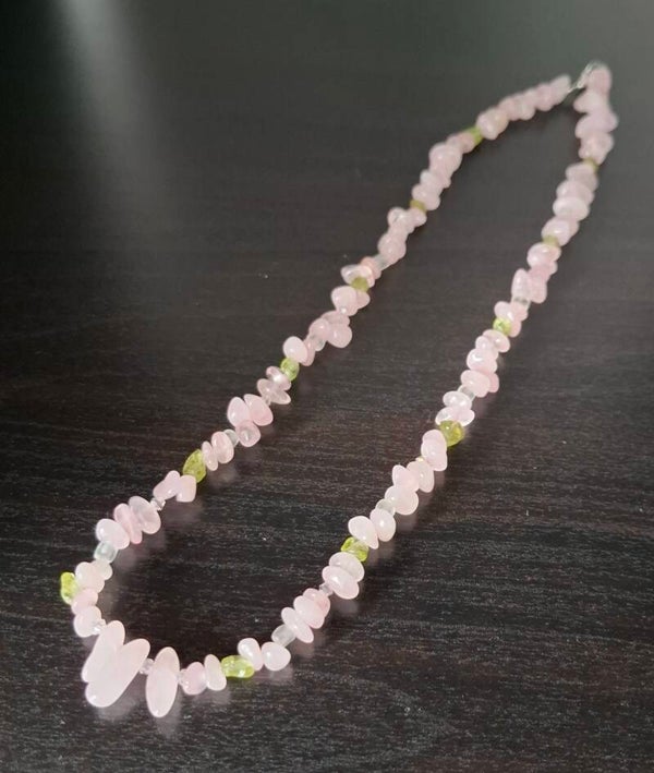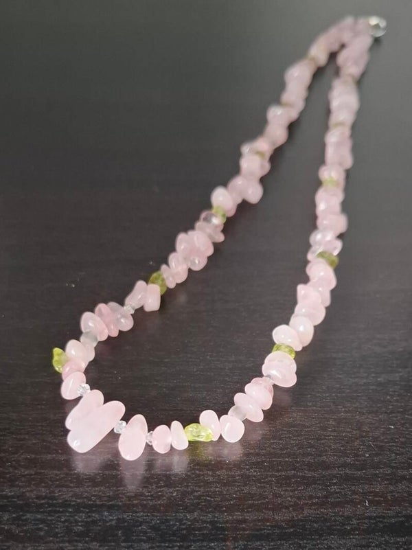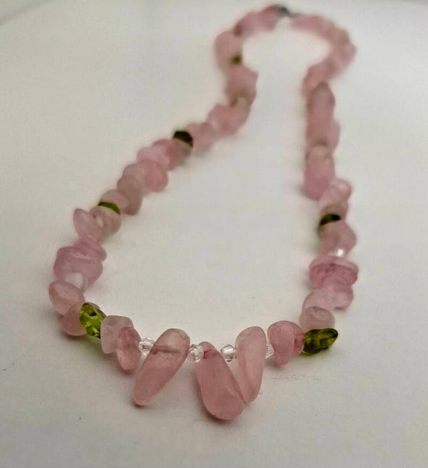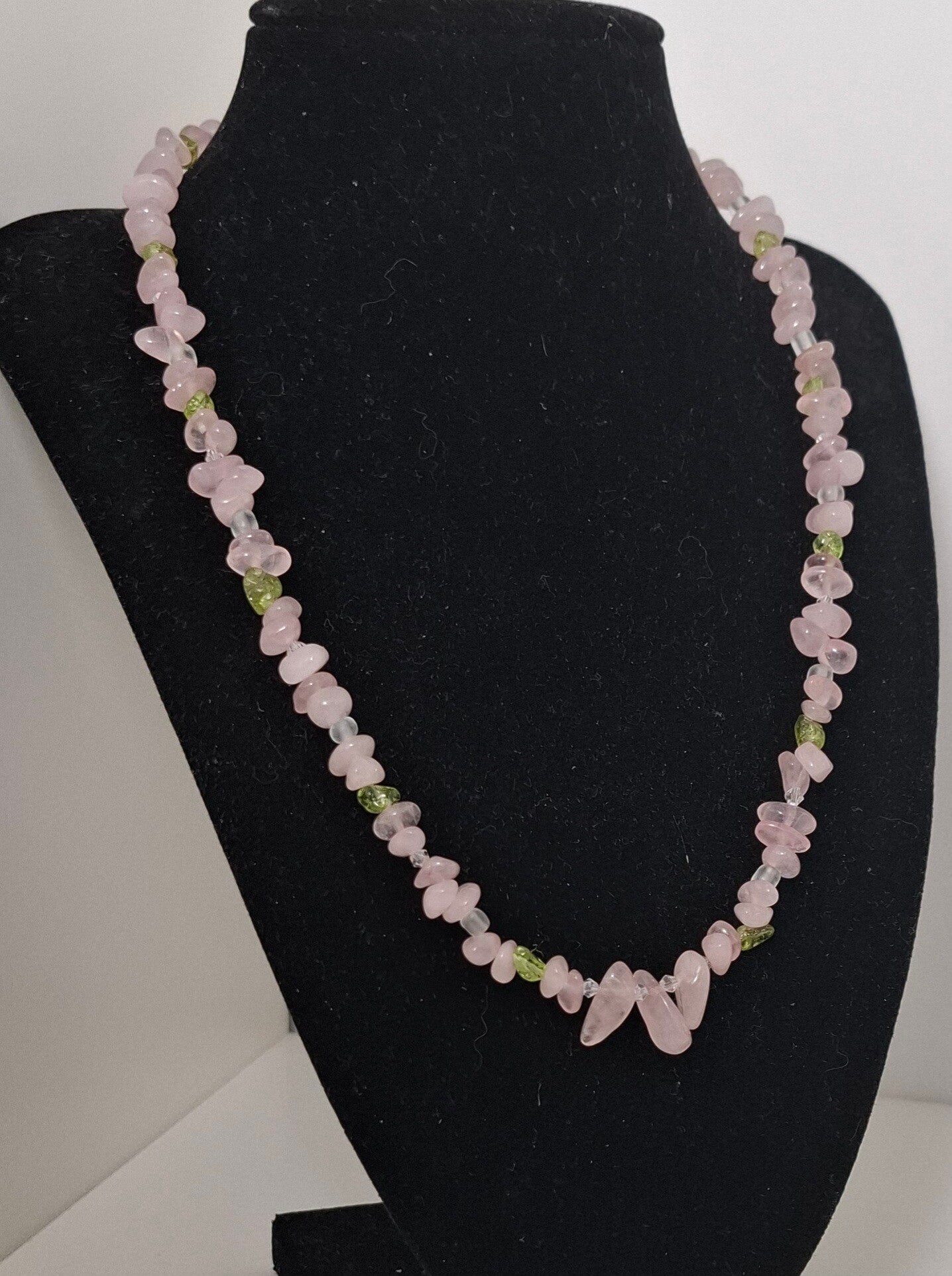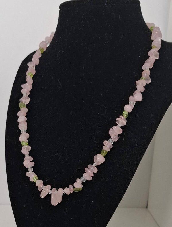Handmade necklace with Rose Quartz & Peridot (with delicate glass bead accents)