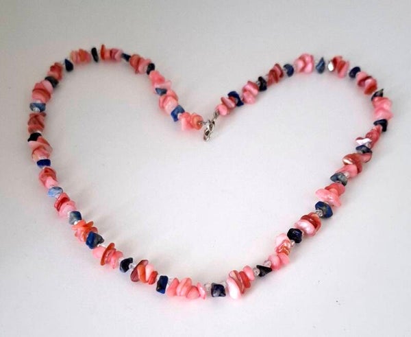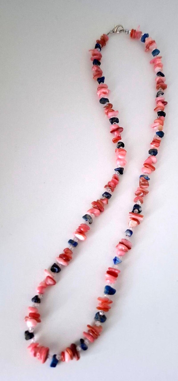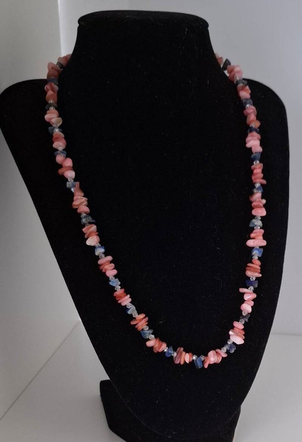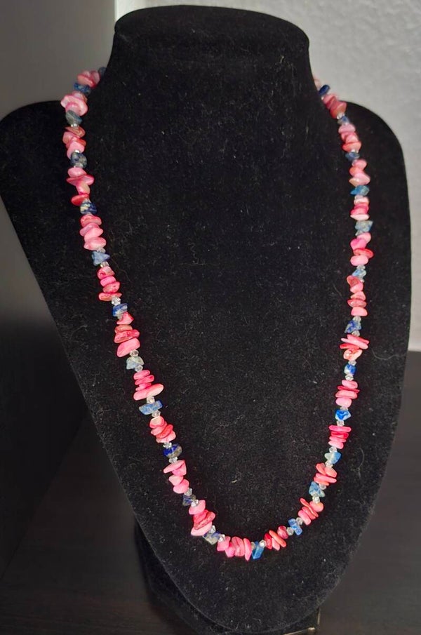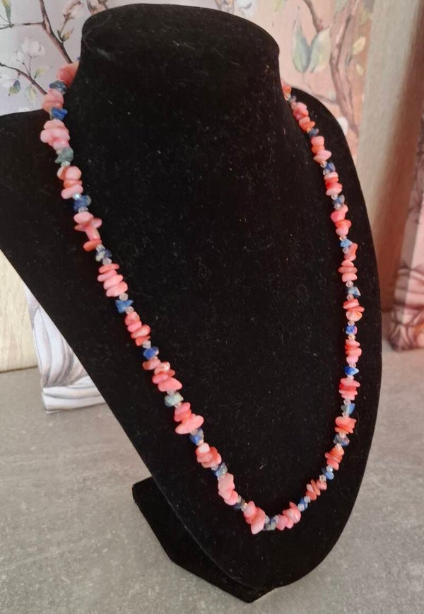 Materials: Pink coral, gemstone beads, jewelry wire
