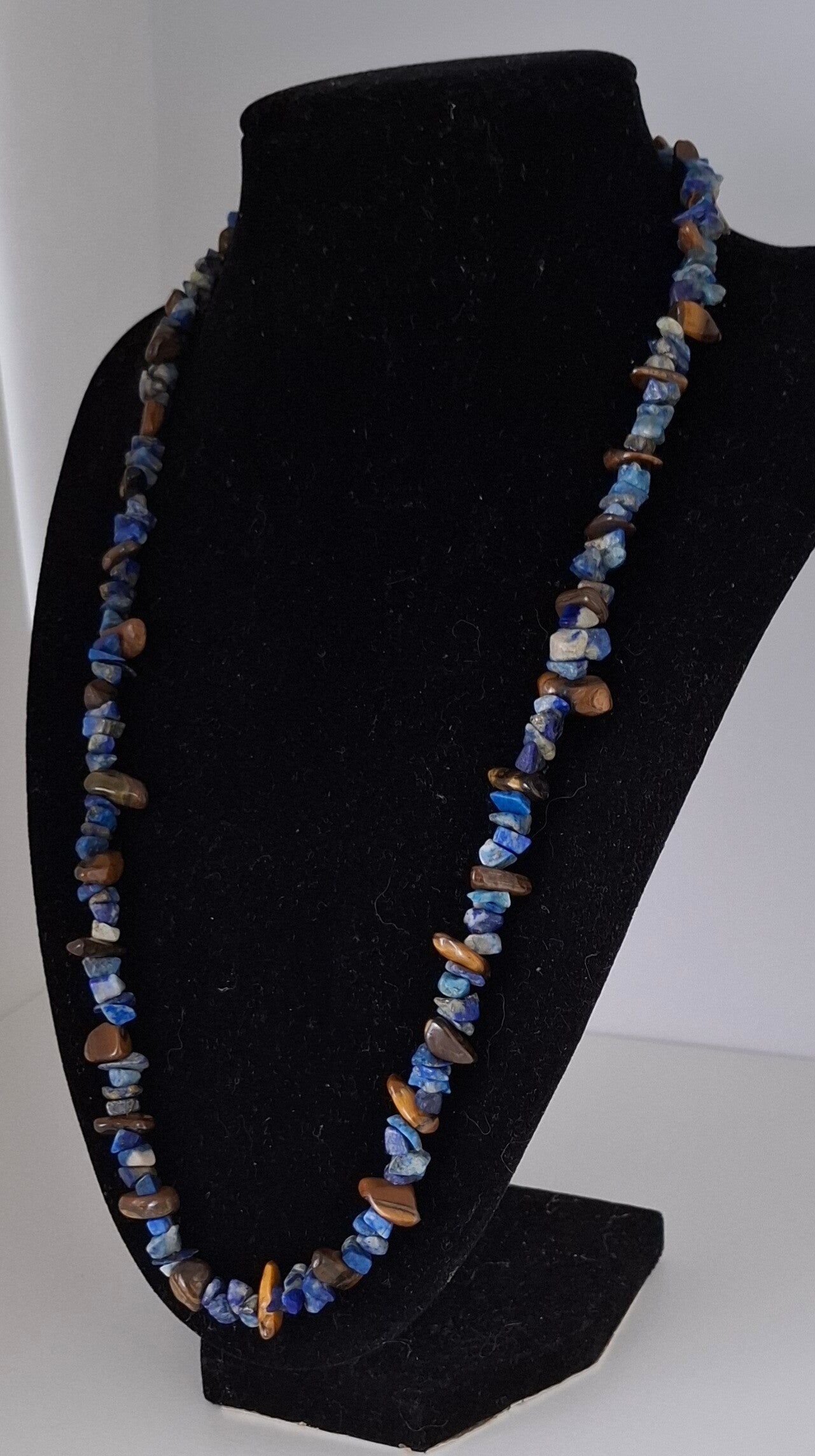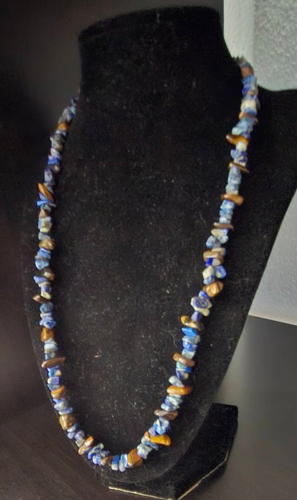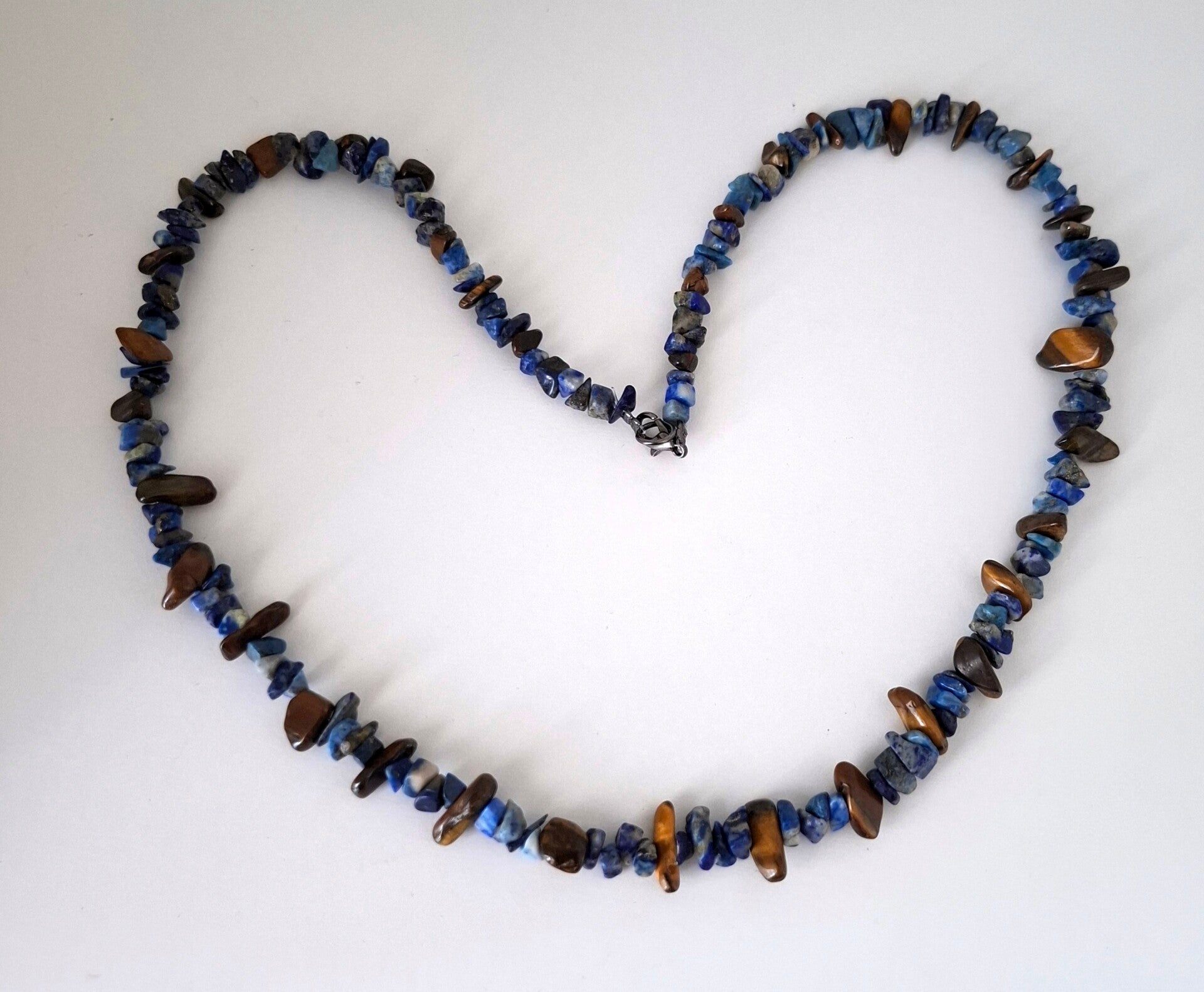 This handmade men’s necklace combines the powerful energy of Lapis Lazuli with the grounding strength of Tiger’s Eye.