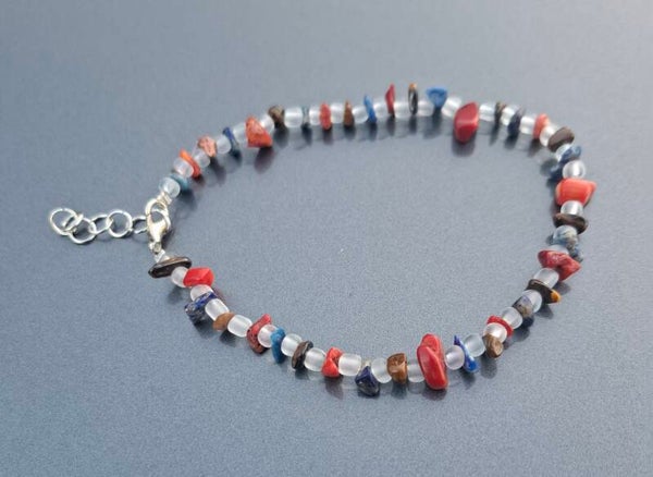 Colors of the Sea – Gemstone Anklet with Tiger’s Eye, Onyx & Red Coral