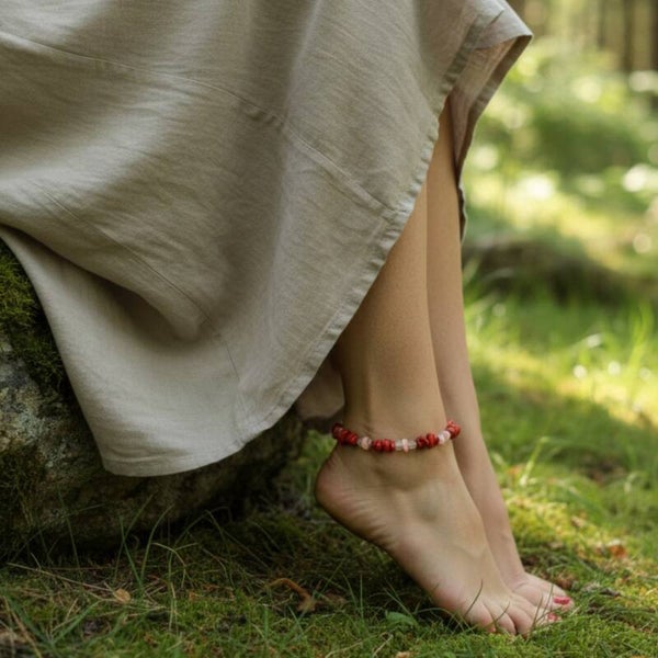 Burning Desire is a handcrafted coral anklet created to embody passion, warmth and quiet inner strength. Worn close to the earth, it carries a gentle fire with every step.