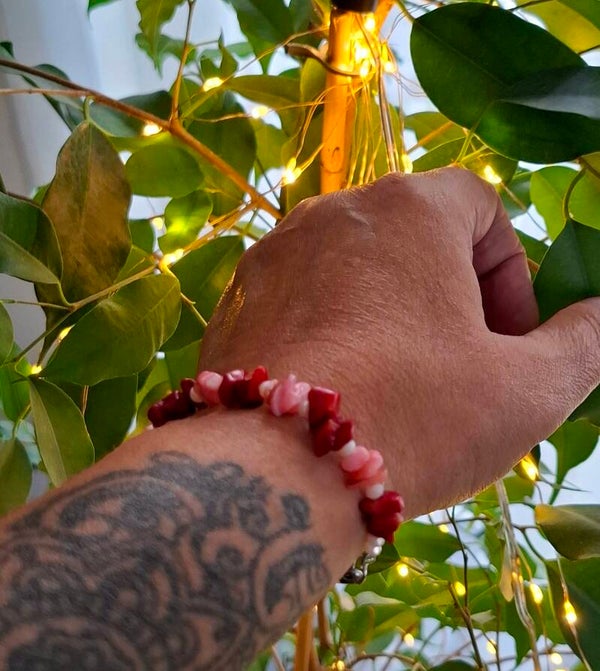 The Heart’s Harmony bracelet unites the colors of love in a delicate yet powerful design. Coral symbolizes joy and protection, while shell brings calm and heart balance. Worn alone or layered, it adds warmth, elegance and a touch of quiet magic to your wrist.