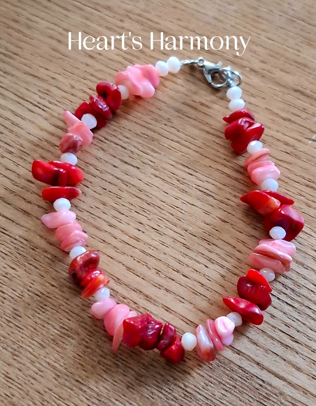 Heart’s Harmony – Coral & Shell Bracelet (Pink/Red)