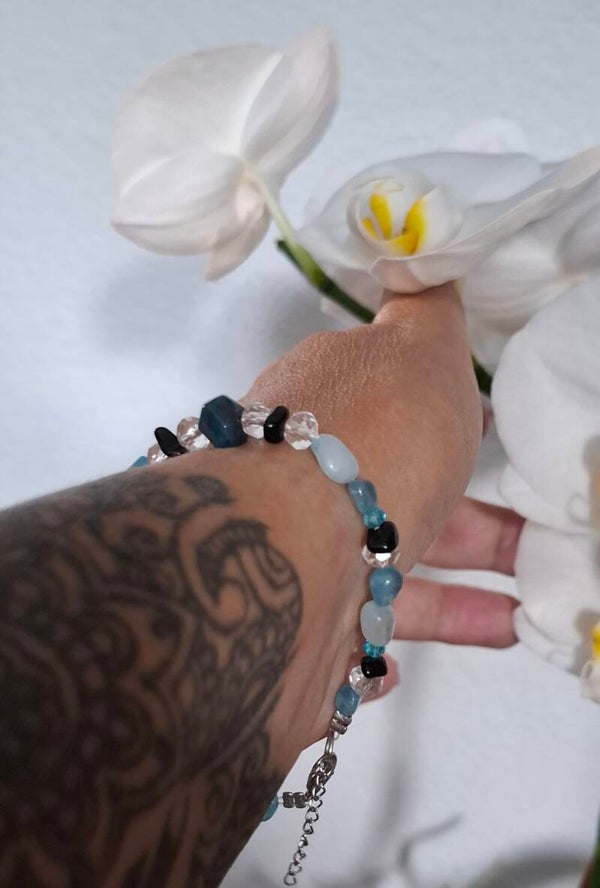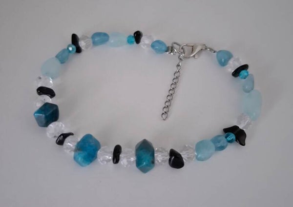 Spirit of the Sea Bracelet β Gemstone Jewelry with Aquamarine, Apatite, Onyx & Crystal