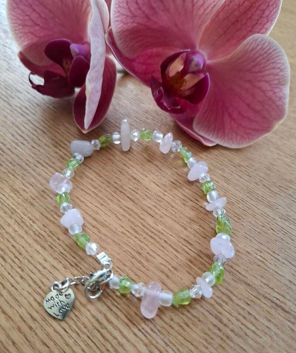 Bracelet Soul’s Blossom – Rose Quartz & Peridot, handmade gemstone jewelry