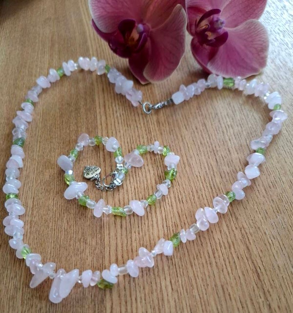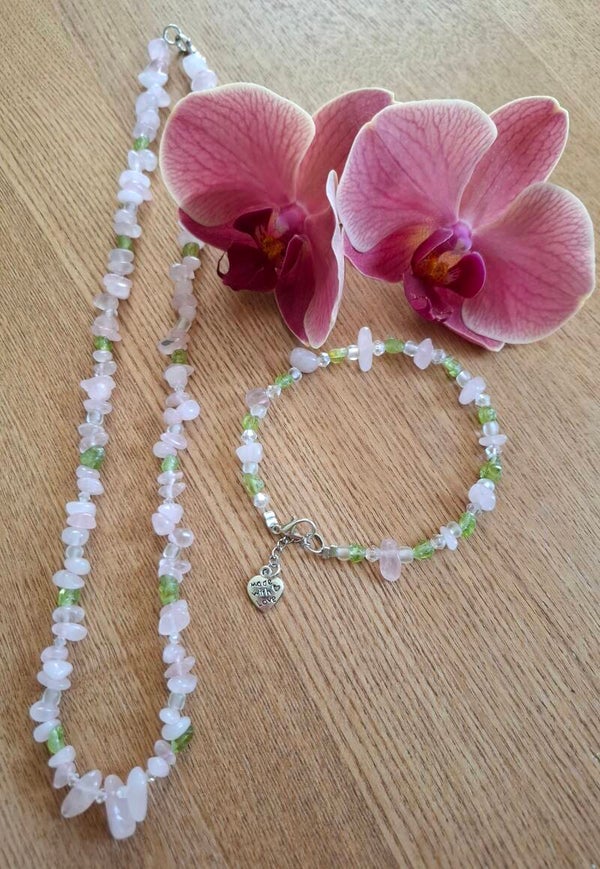 „Like blossoms in the light, heart and soul unfold – carried by rose quartz and peridot.“ 🌸💚
