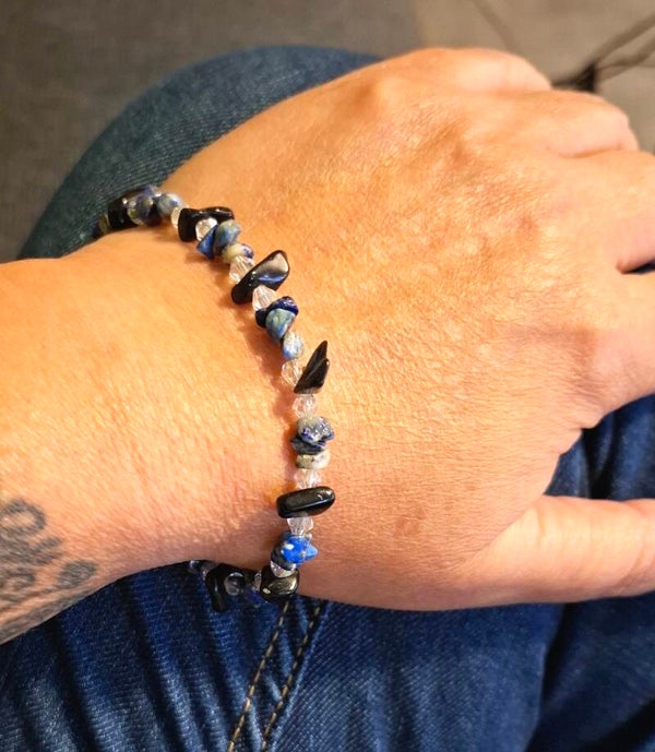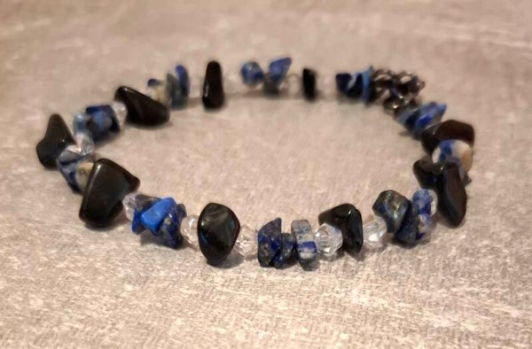 Blue Eclipse β Gemstone Bracelet with Lapis Lazuli, Onyx & Crystal Beads