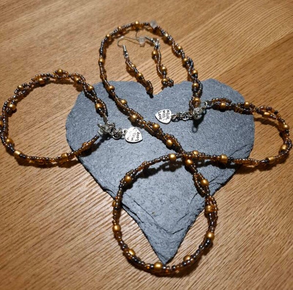Materials: Gold-brown glass beads (round & faceted), nickel-free metal parts