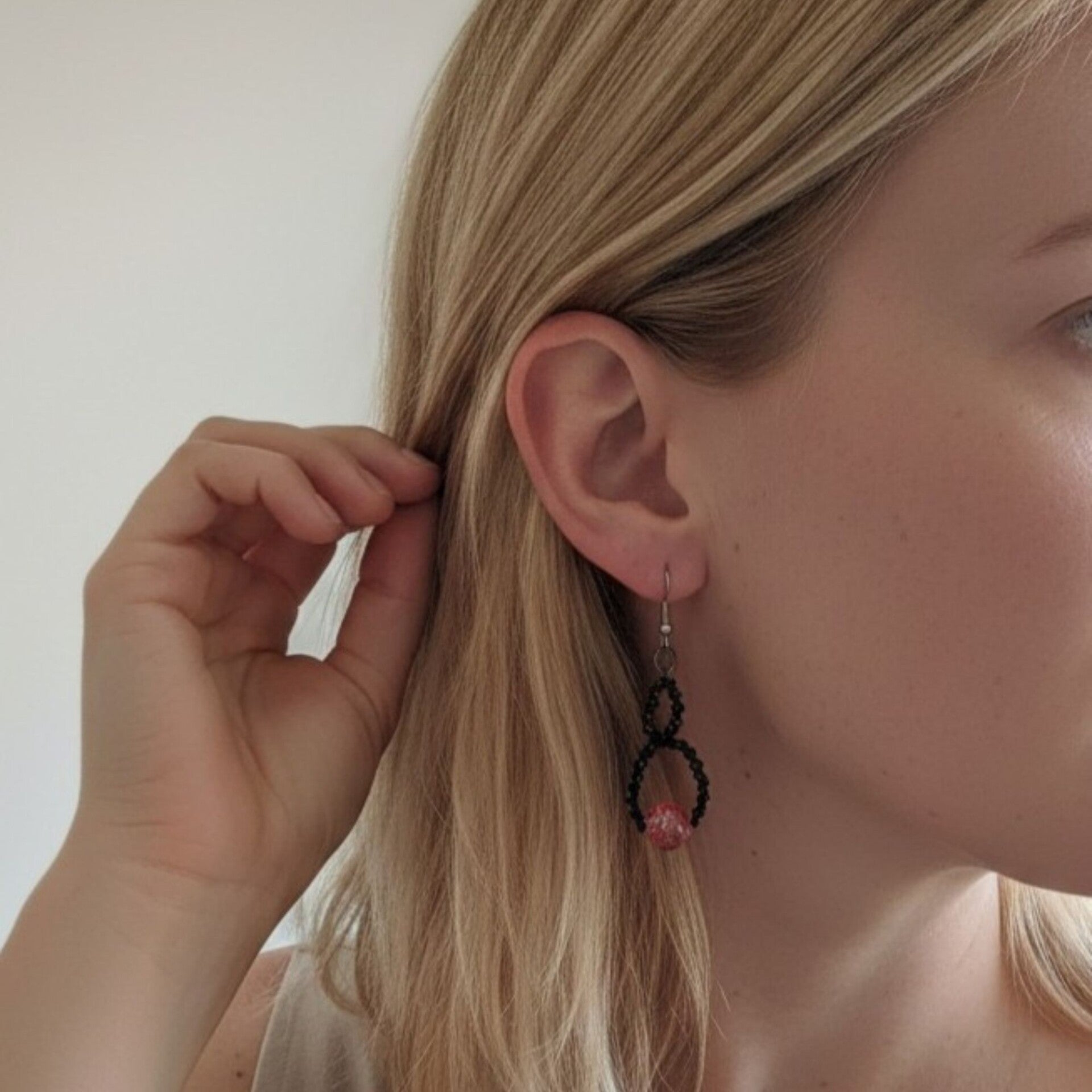 These earrings are made for women who do not need to be loud to be seen. For those who carry their energy without having to explain it. Black represents depth and clarity. Red stands for courage and vitality. Together, they create contrast and harmony at the same time.